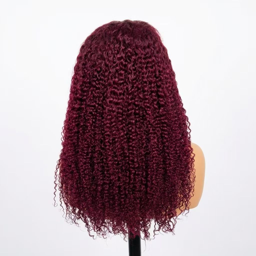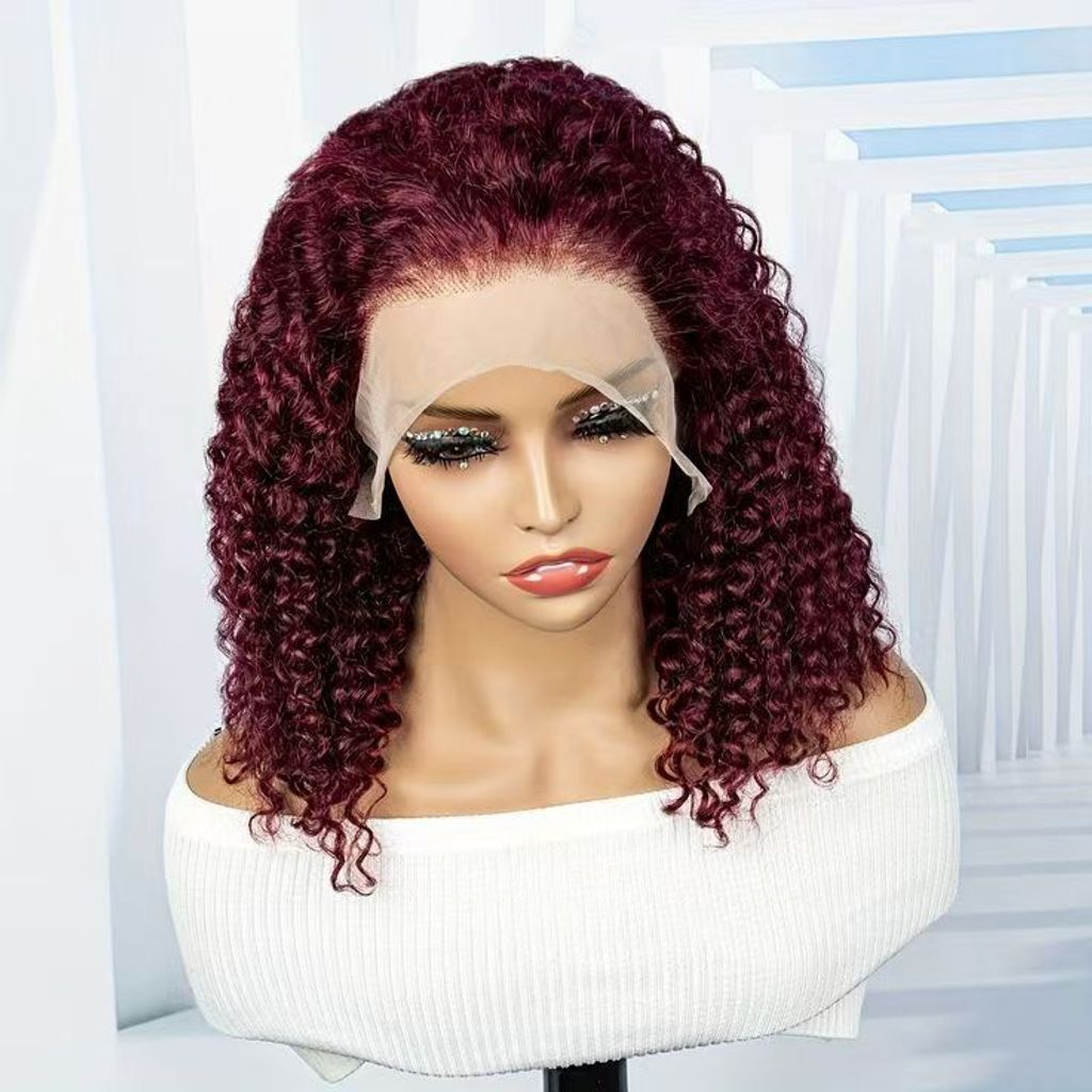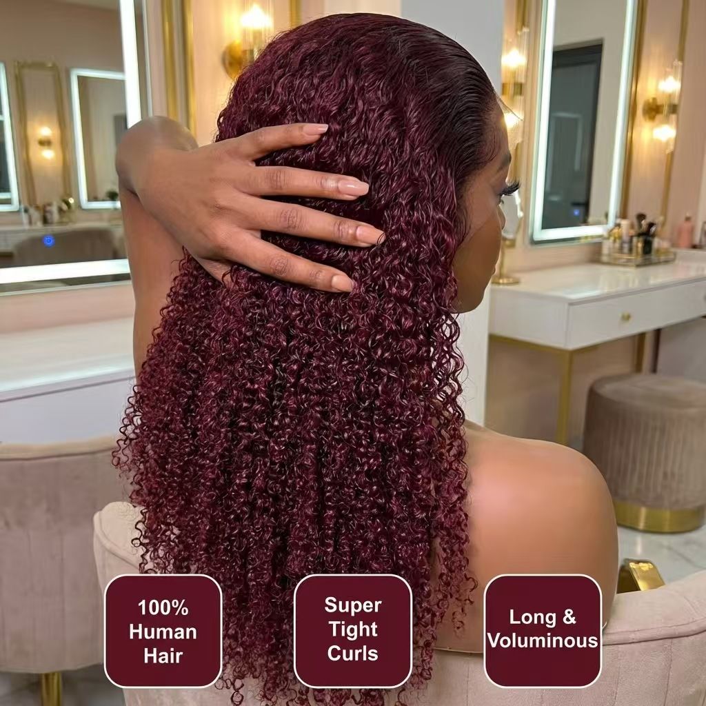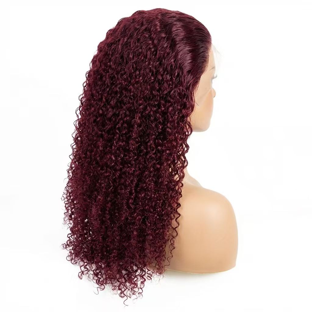 Hot Sales 99J Burgundy Curly Wig 100%Human Hair 200% Density13X4 Lace Front Wig Water Wave Transparent Lace 22inch Wine Color 100% Human Hair Wig