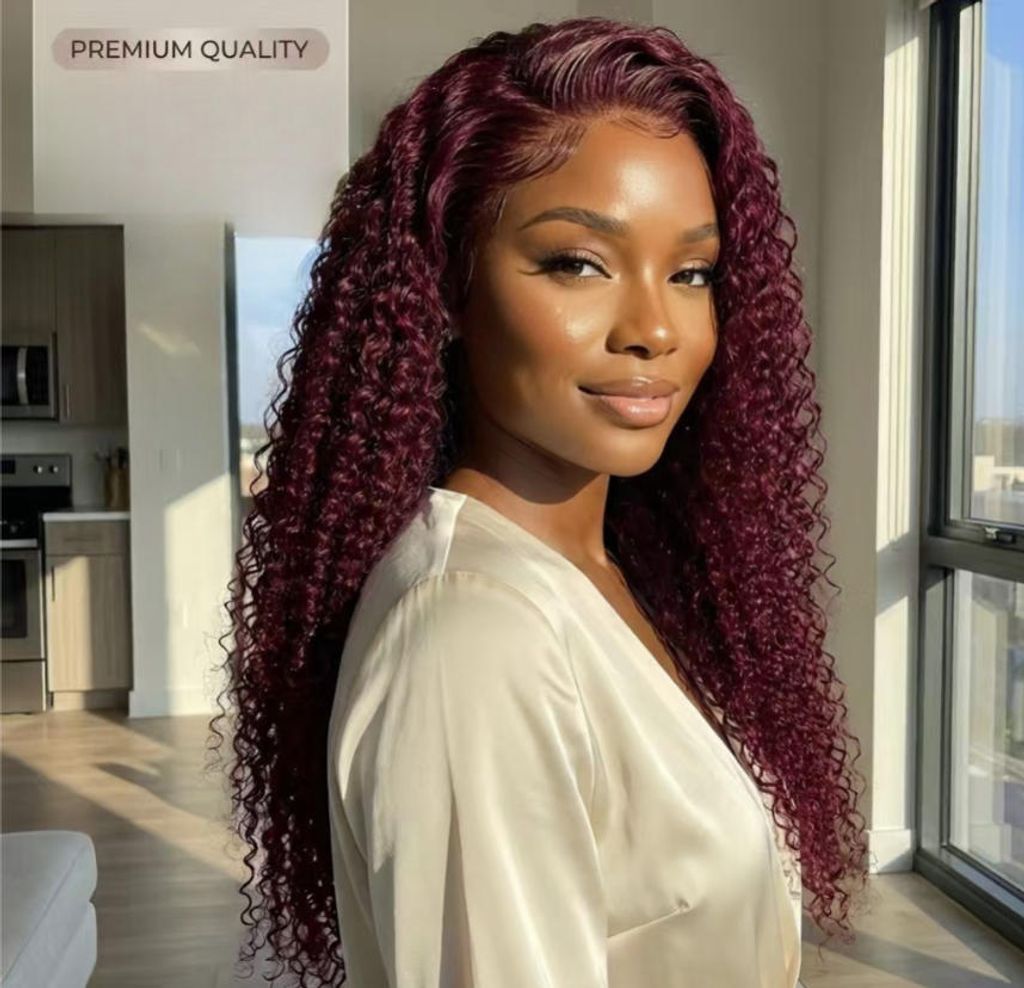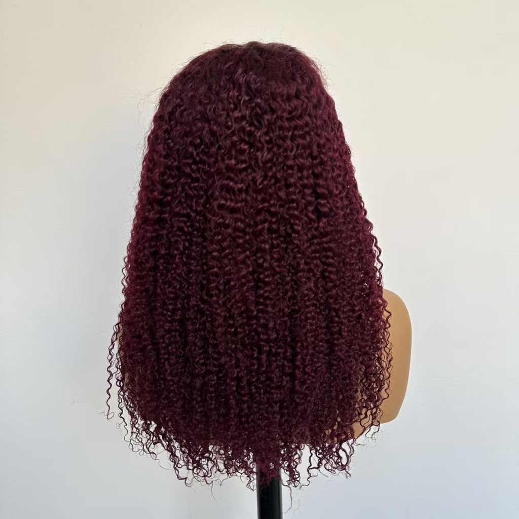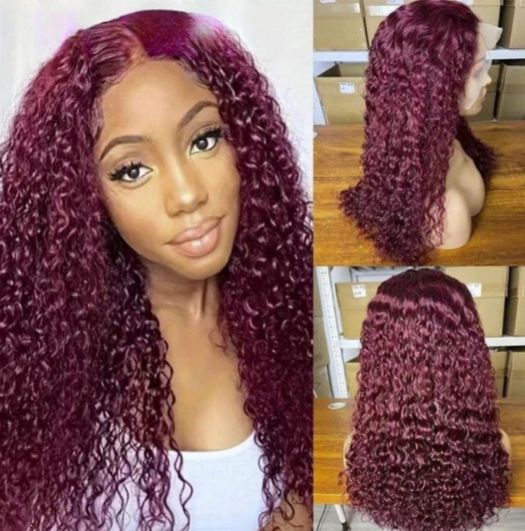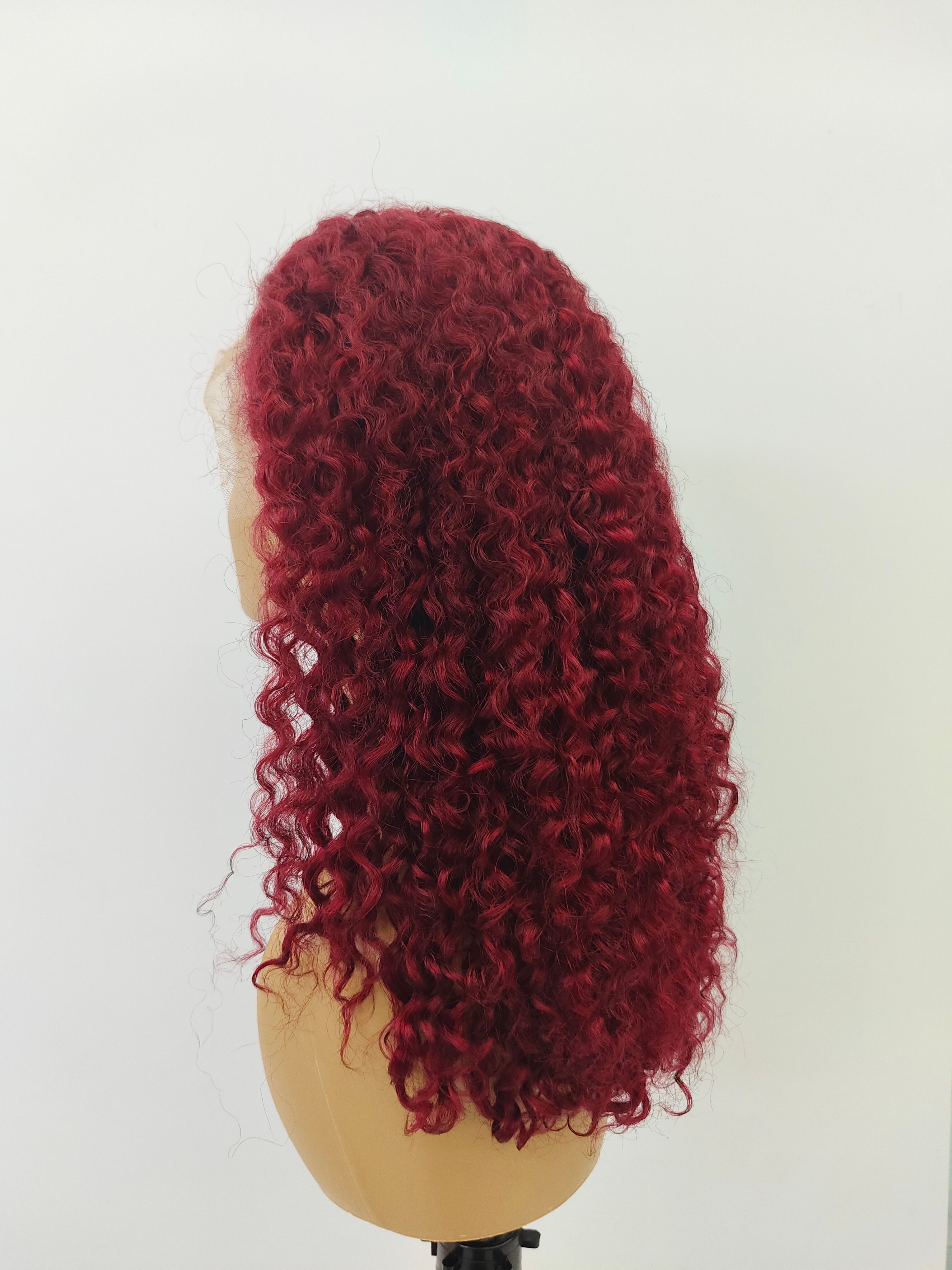 Hot Sales 99J Burgundy Curly Wig 100%Human Hair 200% Density13X4 Lace Front Wig Water Wave Transparent Lace 22inch Wine Color 100% Human Hair Wig