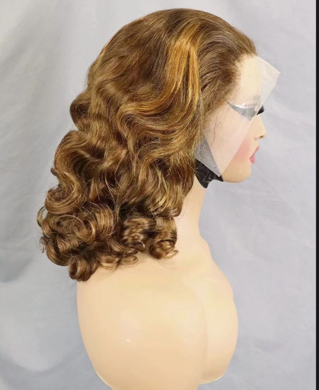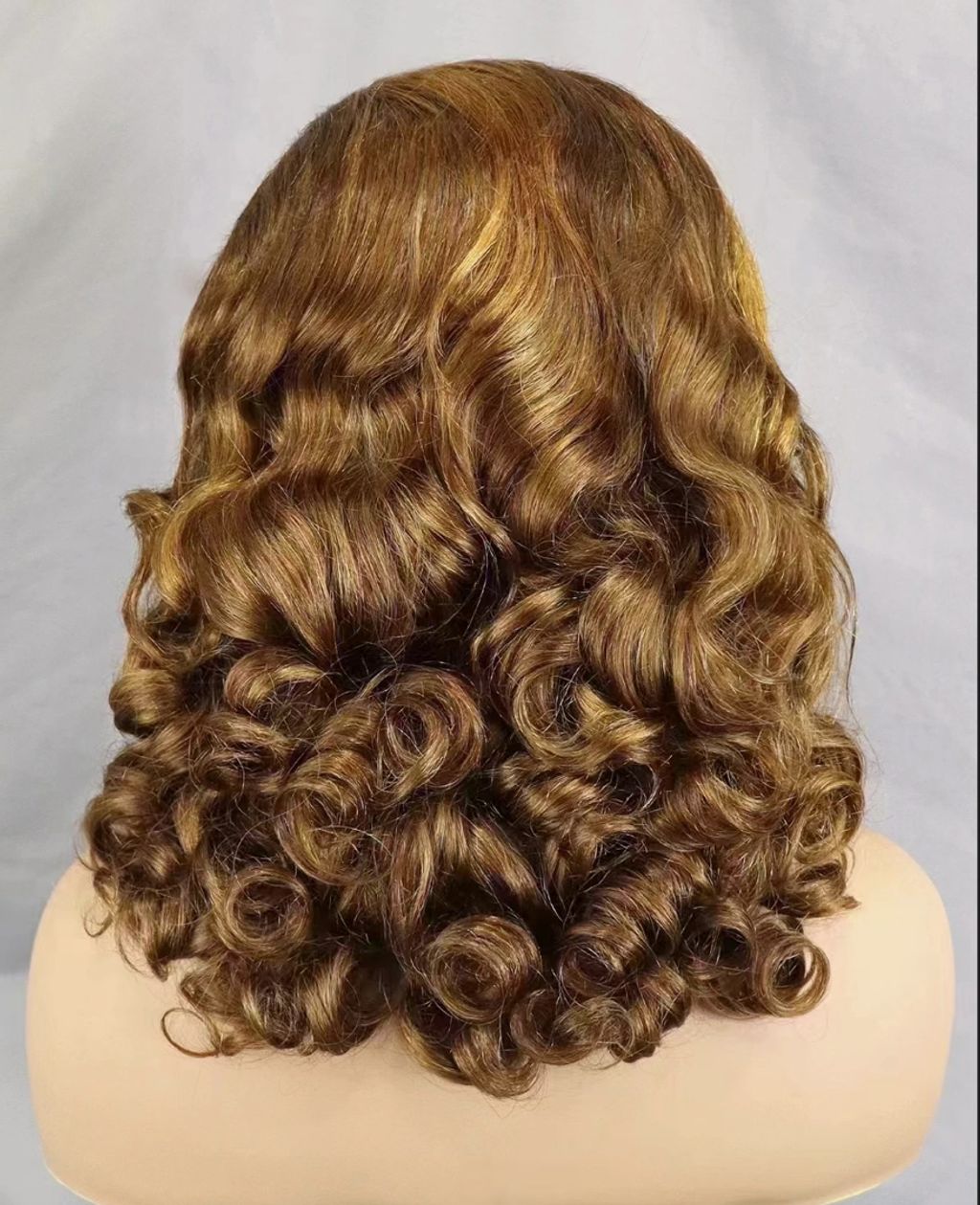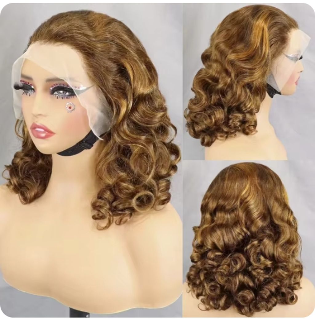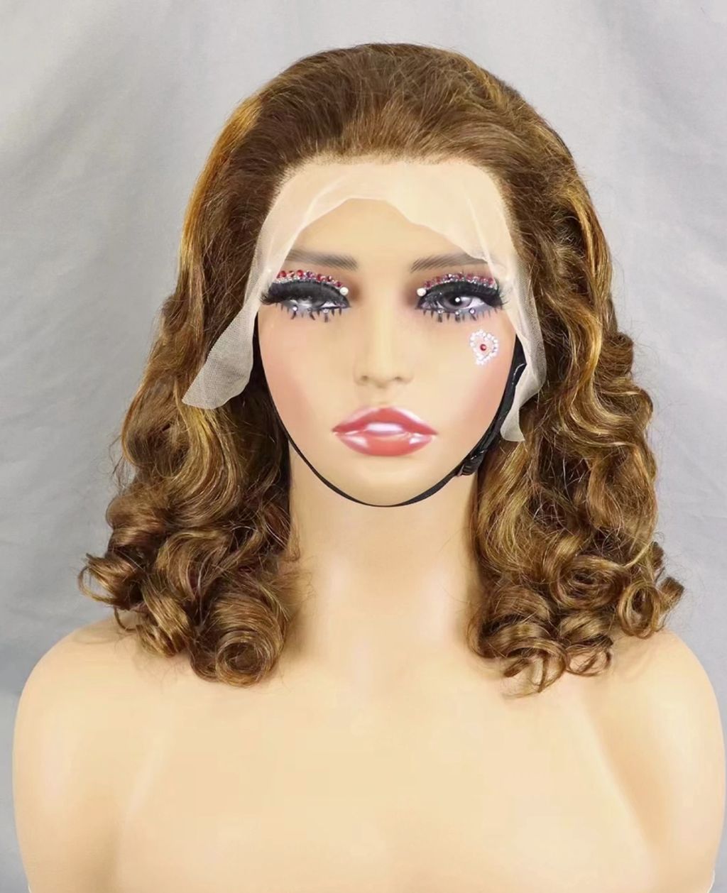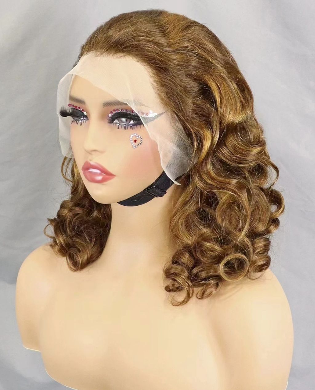 300% Density Bouncy Curly Human Hair Wigs Honey blonde Highlight Ombre Brazilian Remy Hair Wig Transparent 13x4 Glueless Lace Frontal Wigs
