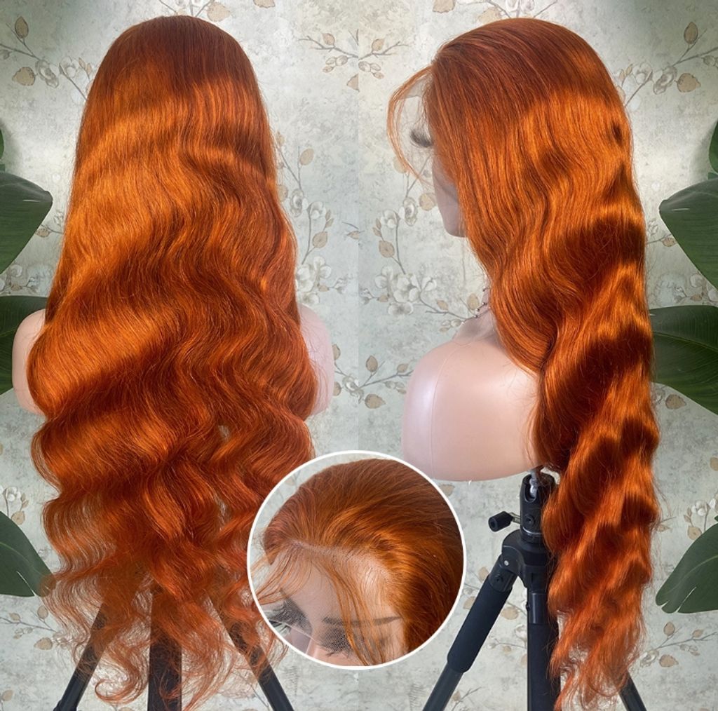 30in body Wave Ginger 13x4 Lace Frontal Human Hair Wig Brazilian Ginger Orange Color body wave Lace Front Bob Wigs