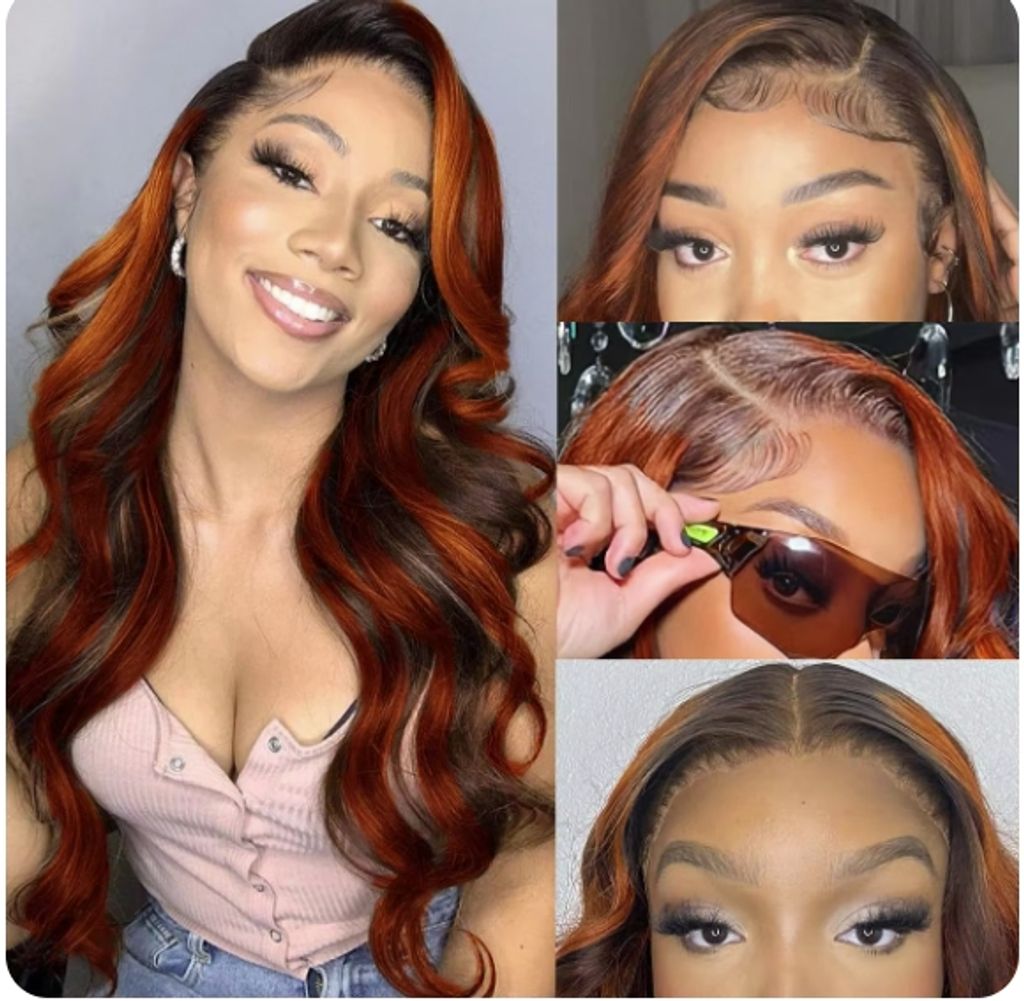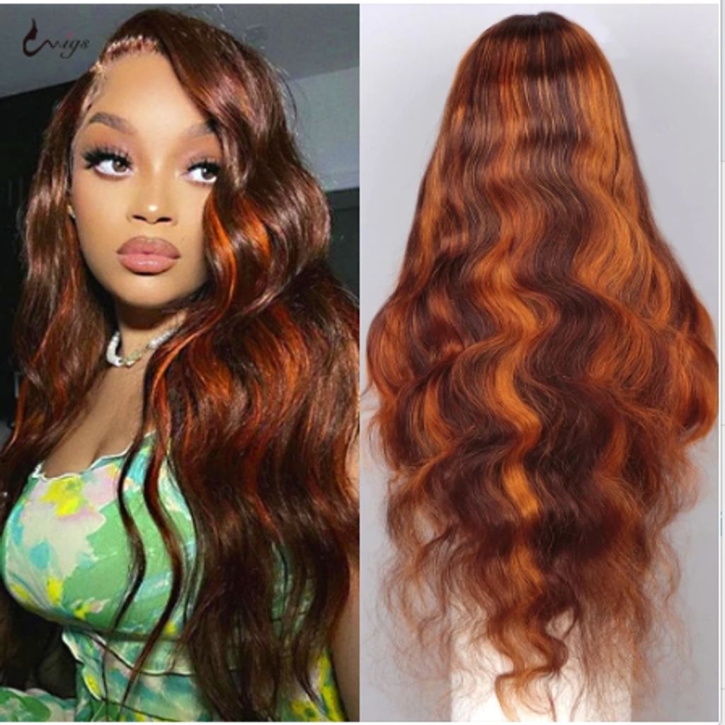 30in 40in body Wave Highlight 13x4 Lace Frontal Human Hair Wig Brazilian Ginger Orange Brown Piano Color body wave Lace Front Bob Wigs