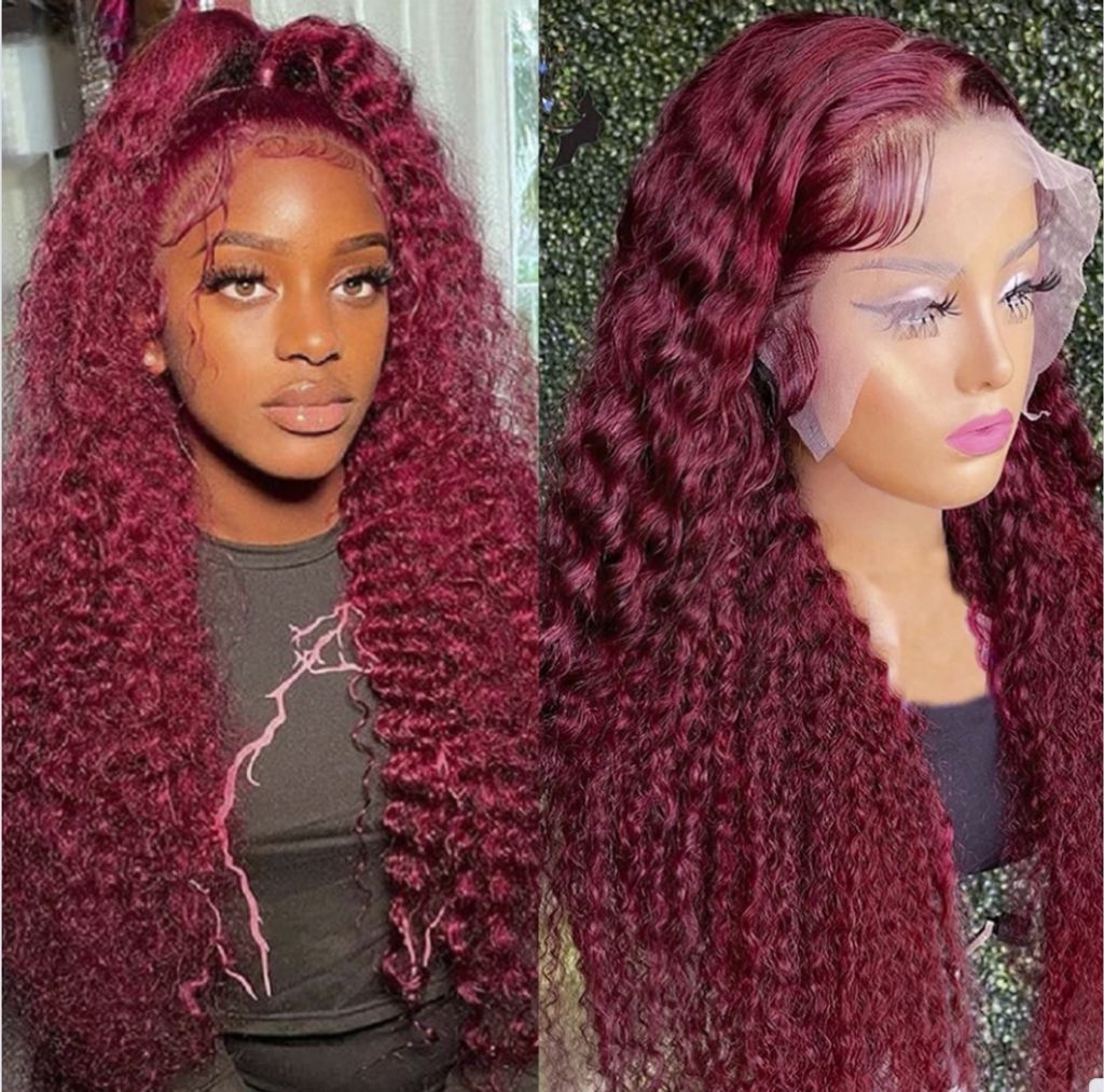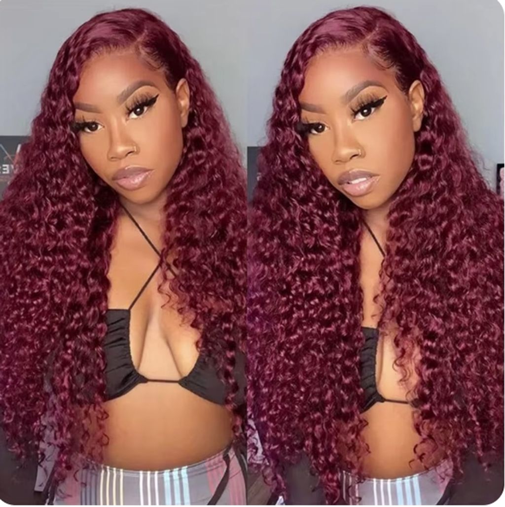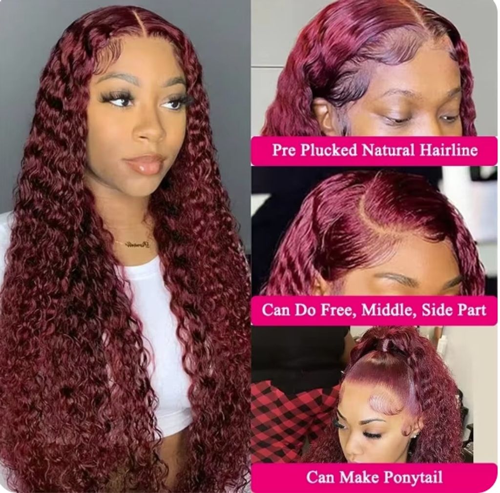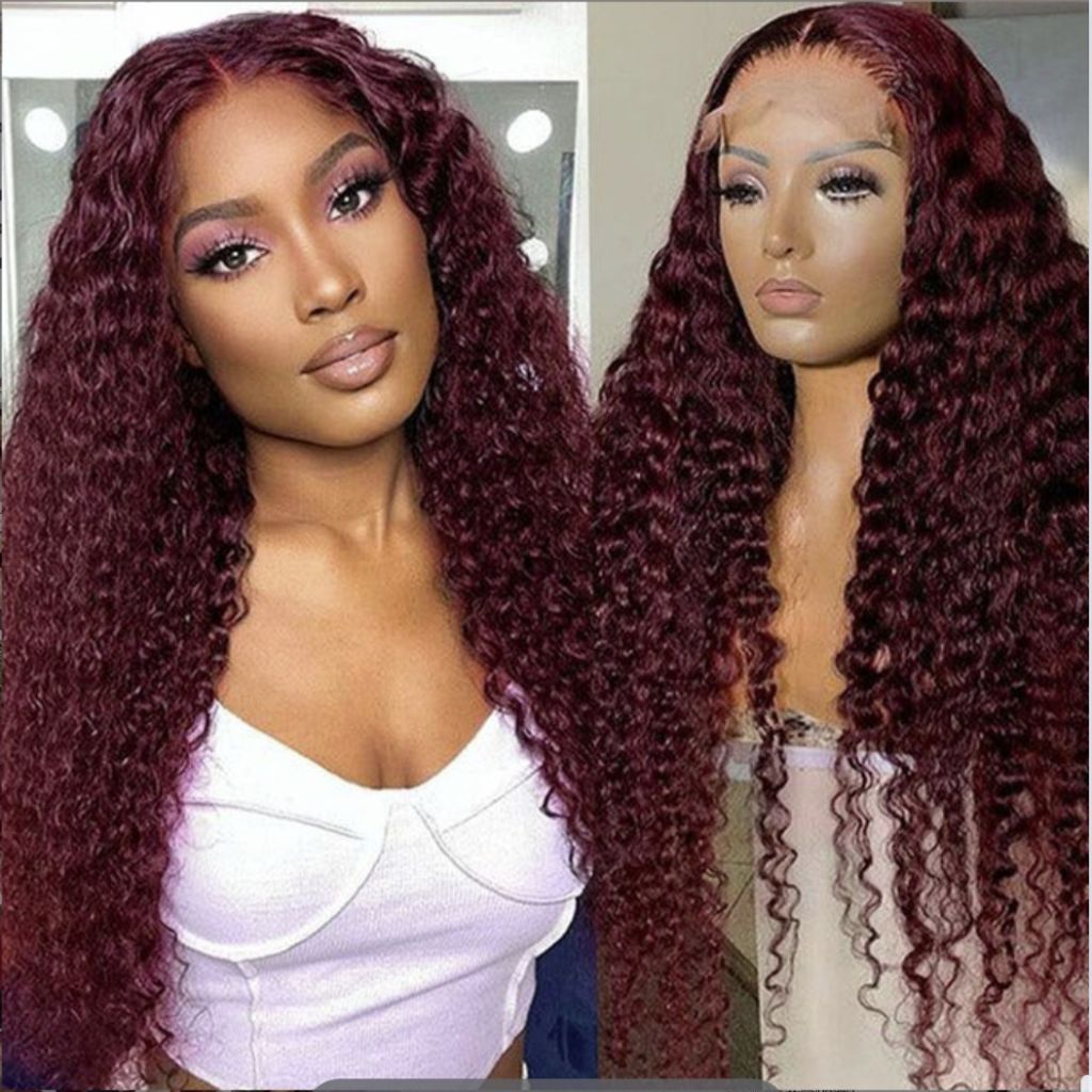 99J Burgundy Color Lace Wig deep wave frontal lace deep curly 13X4 lace front human hair wig 100% human hair wig 复制