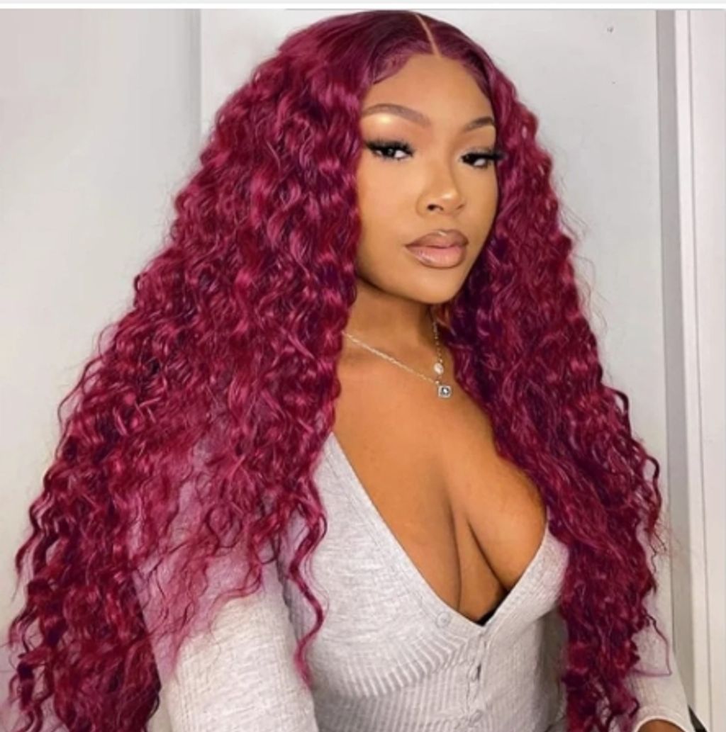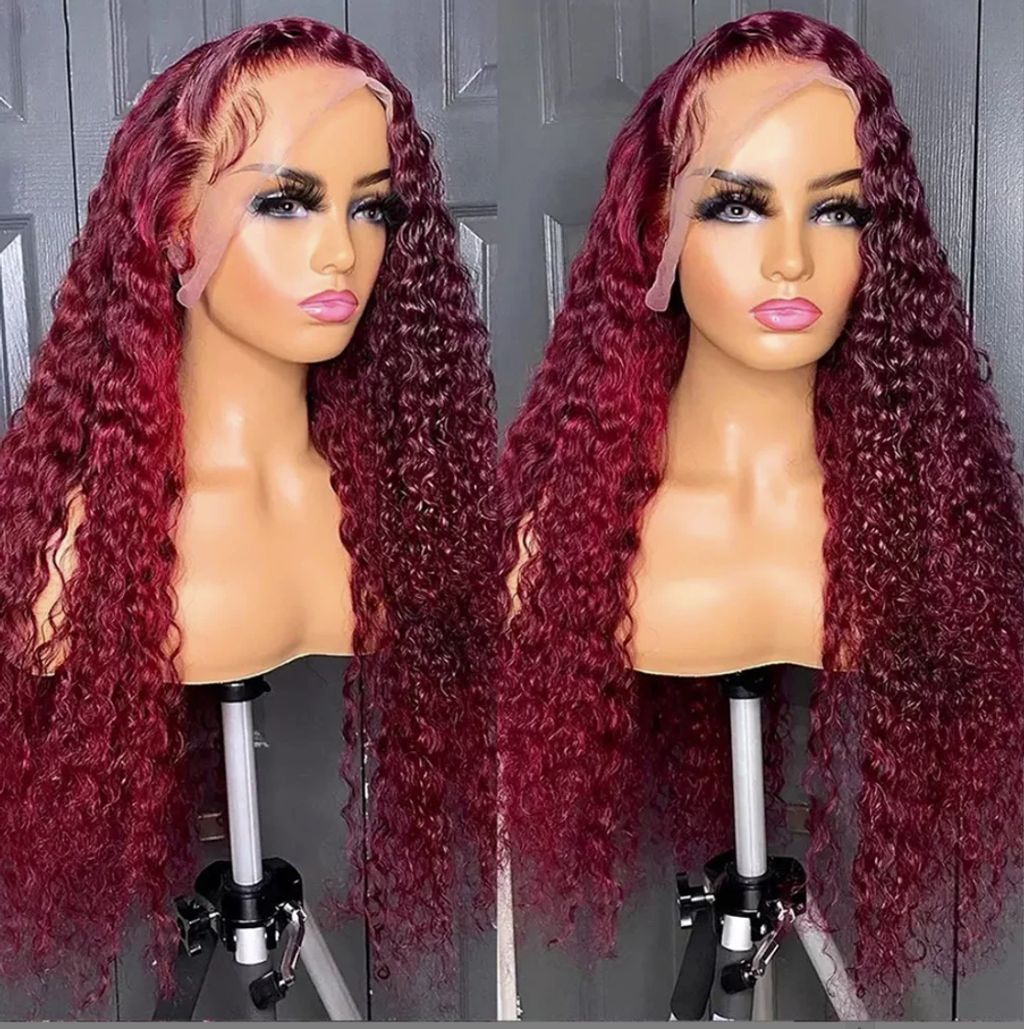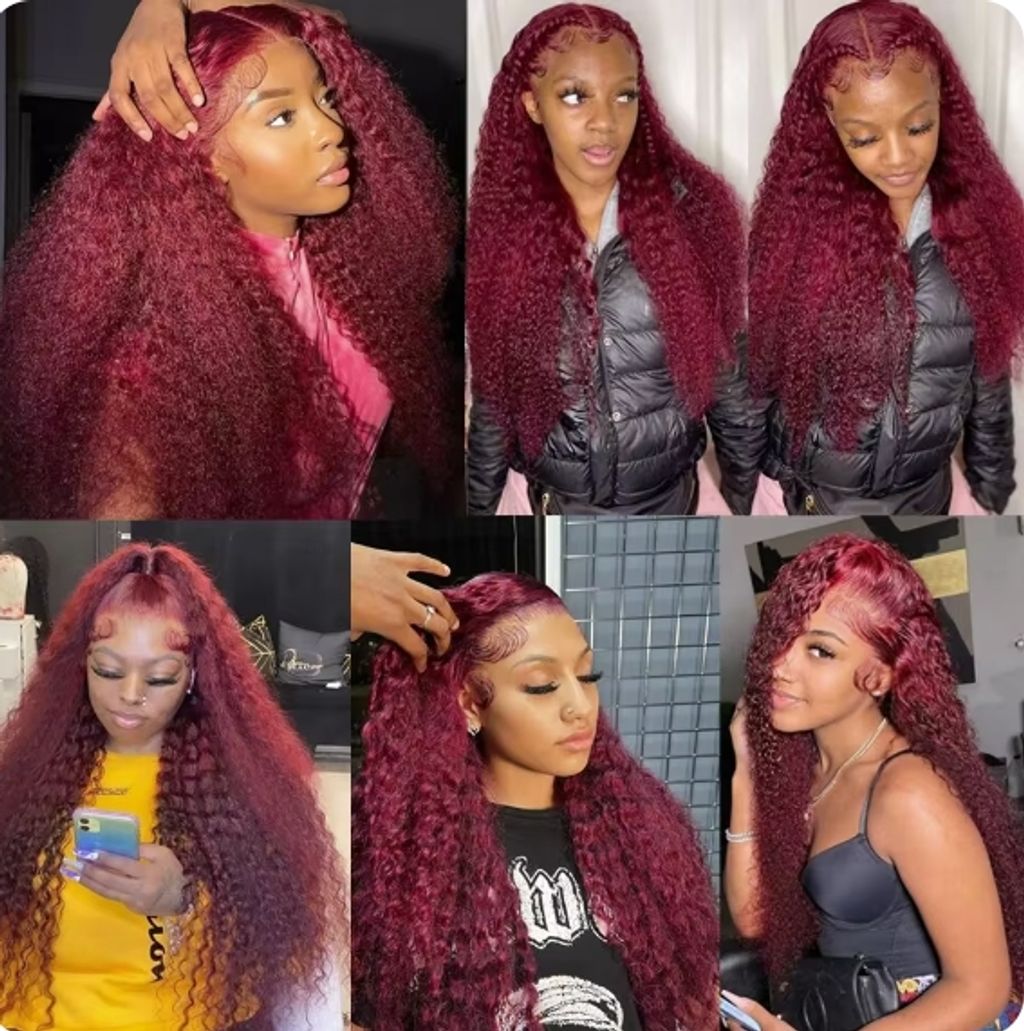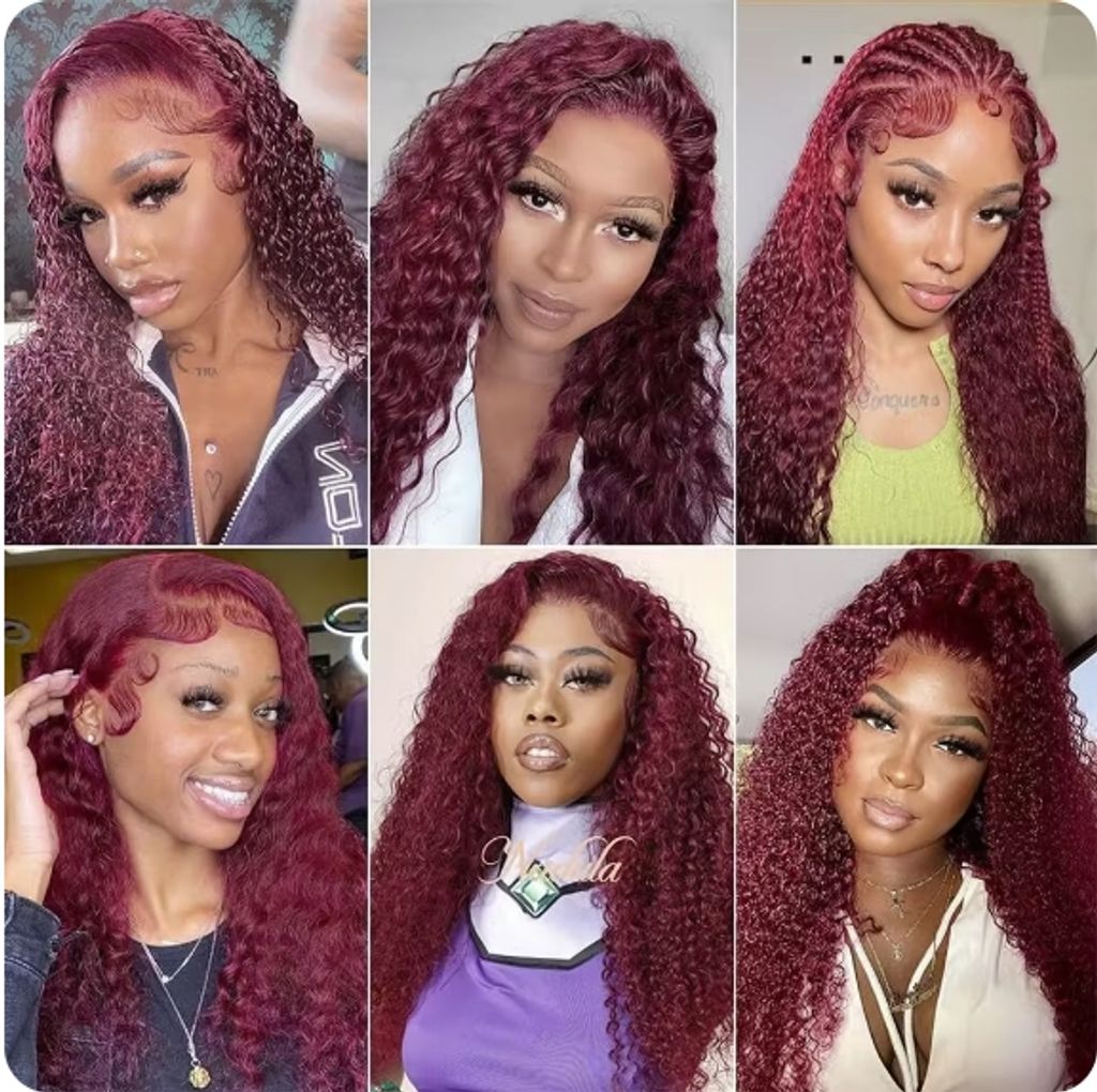 99J Burgundy Color Lace Wig deep wave frontal lace deep curly 13X4 lace front human hair wig 100% human hair wig 复制