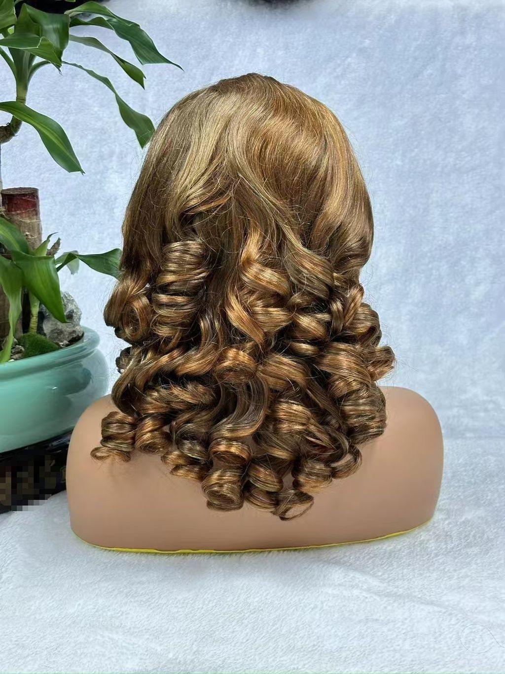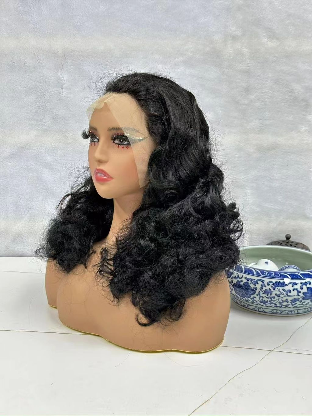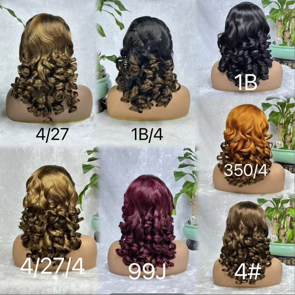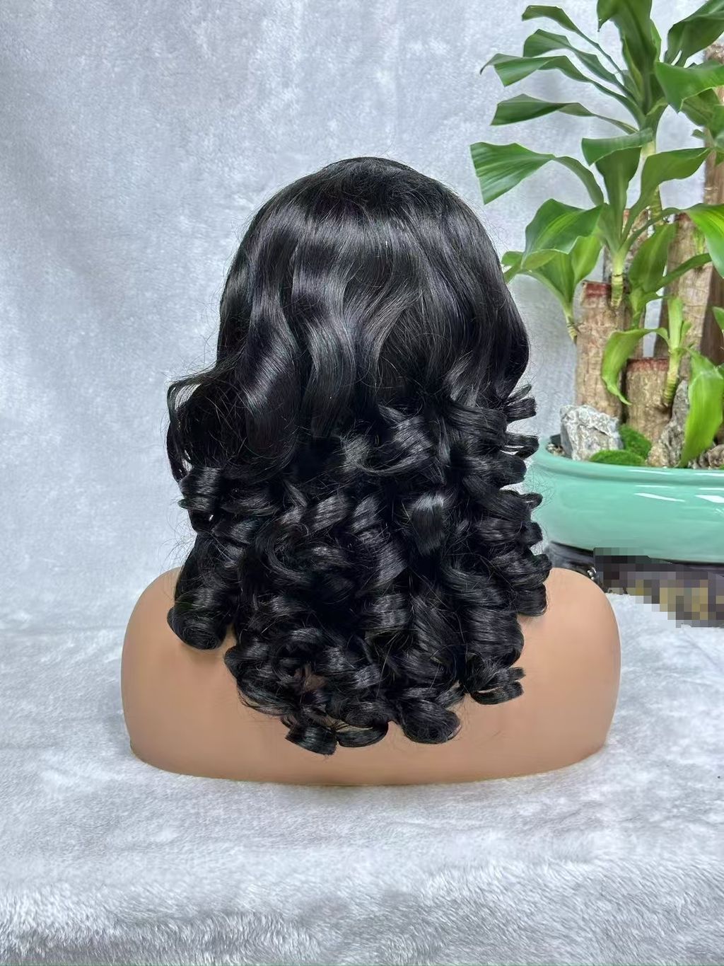 Bouncy Loose Wave Super Double Drawn Hair 13x4 Bob Wig with 100% Human Hair Nature Black 250% Density For Black Women