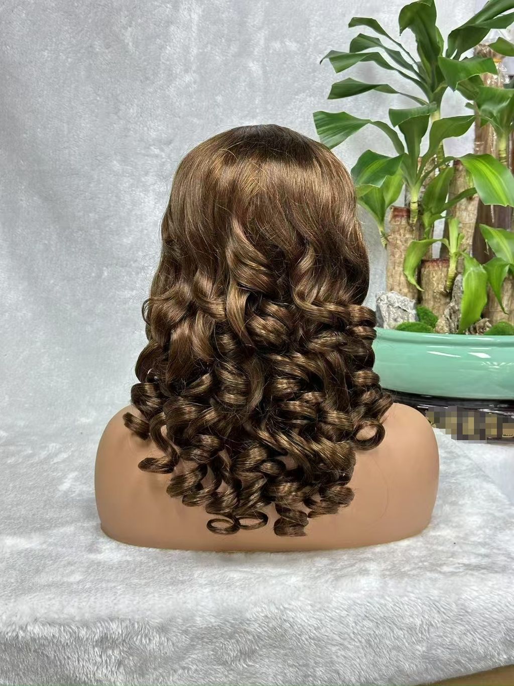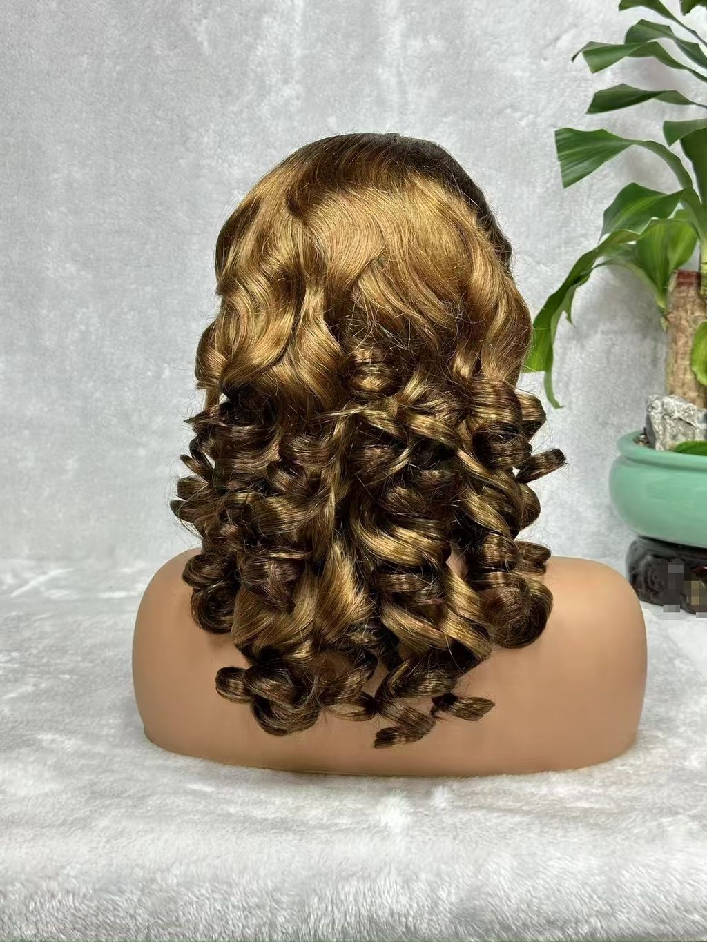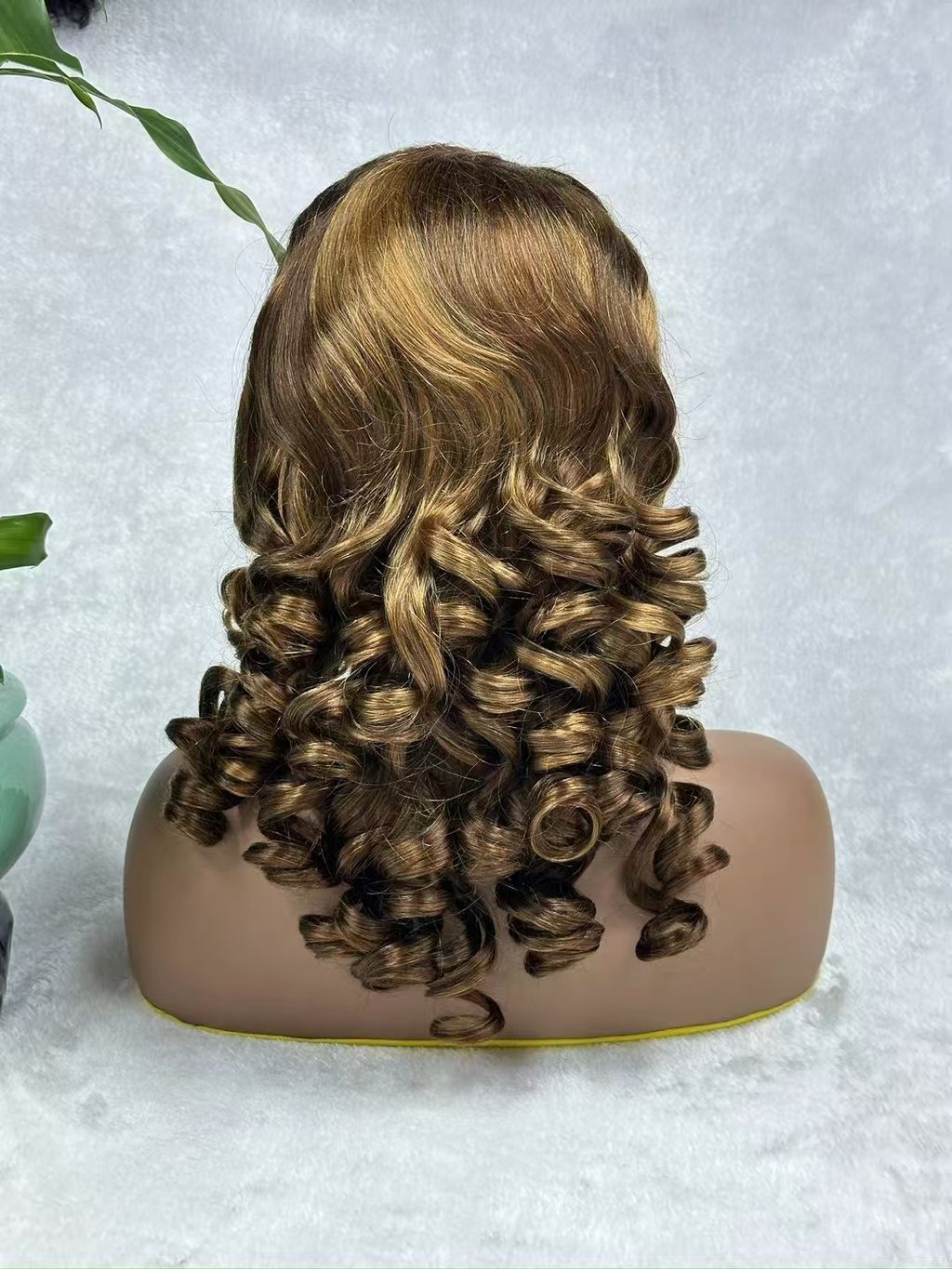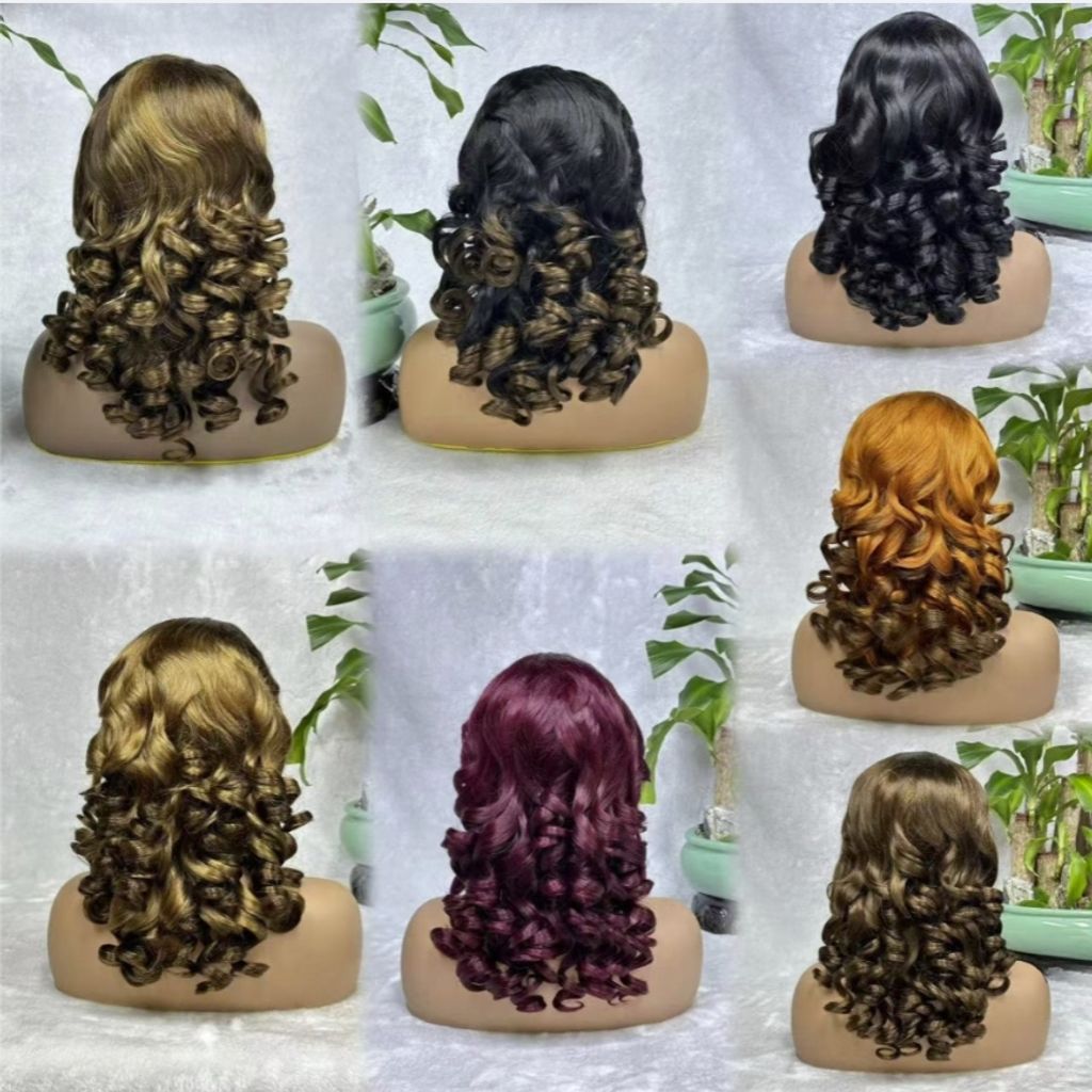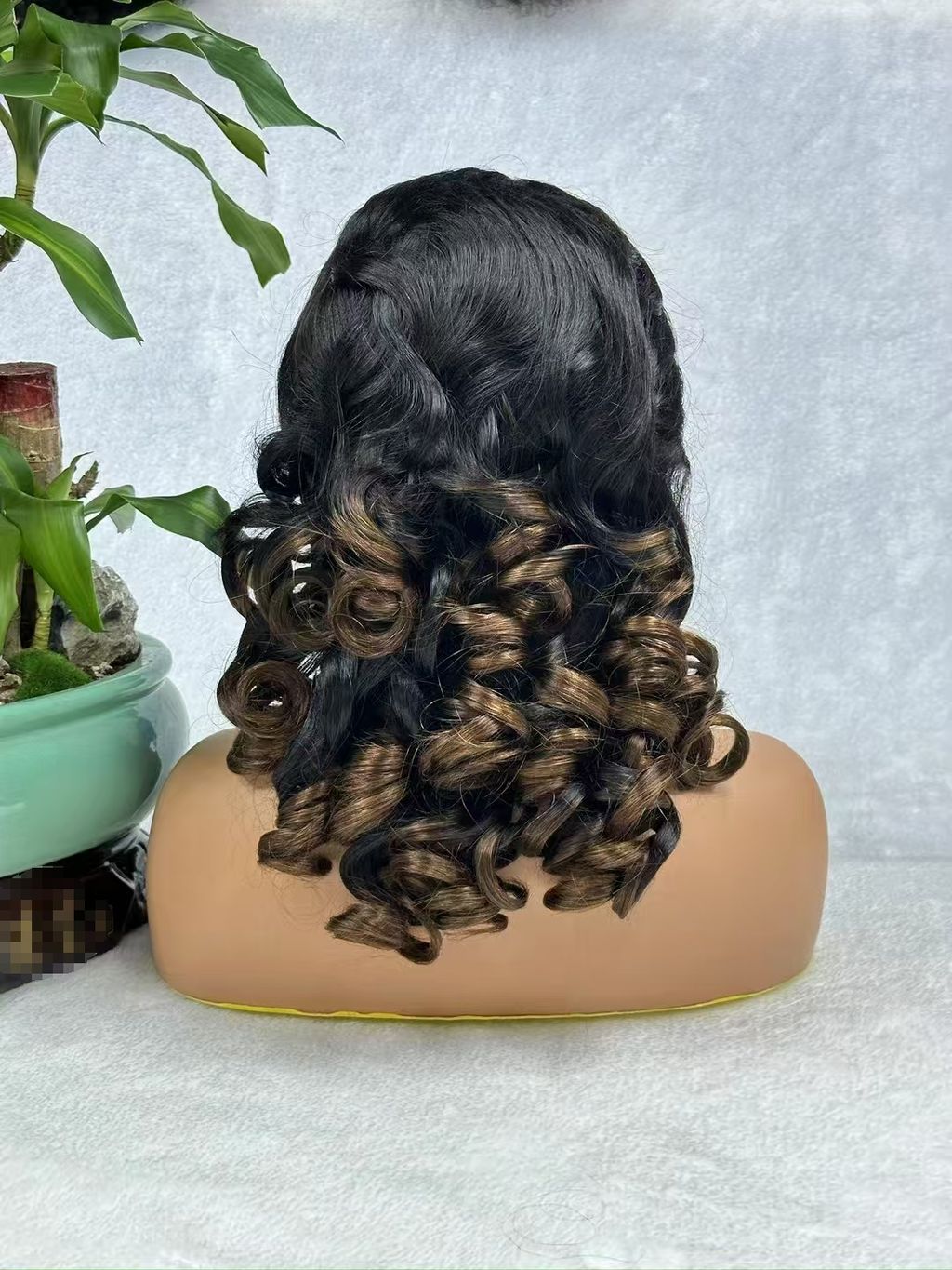 Bouncy Loose Wave Super Double Drawn Hair 13x4 Bob Wig with 100% Human Hair Nature Black 250% Density For Black Women