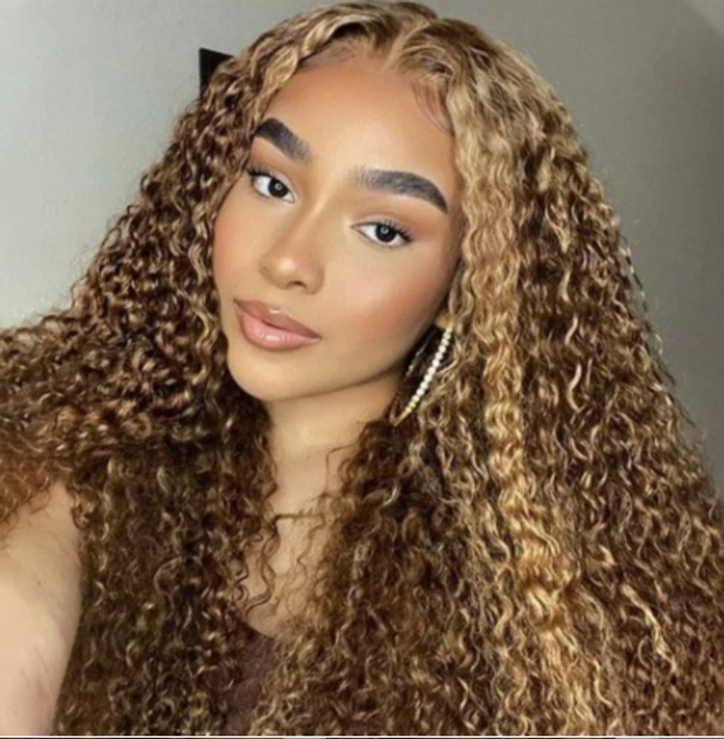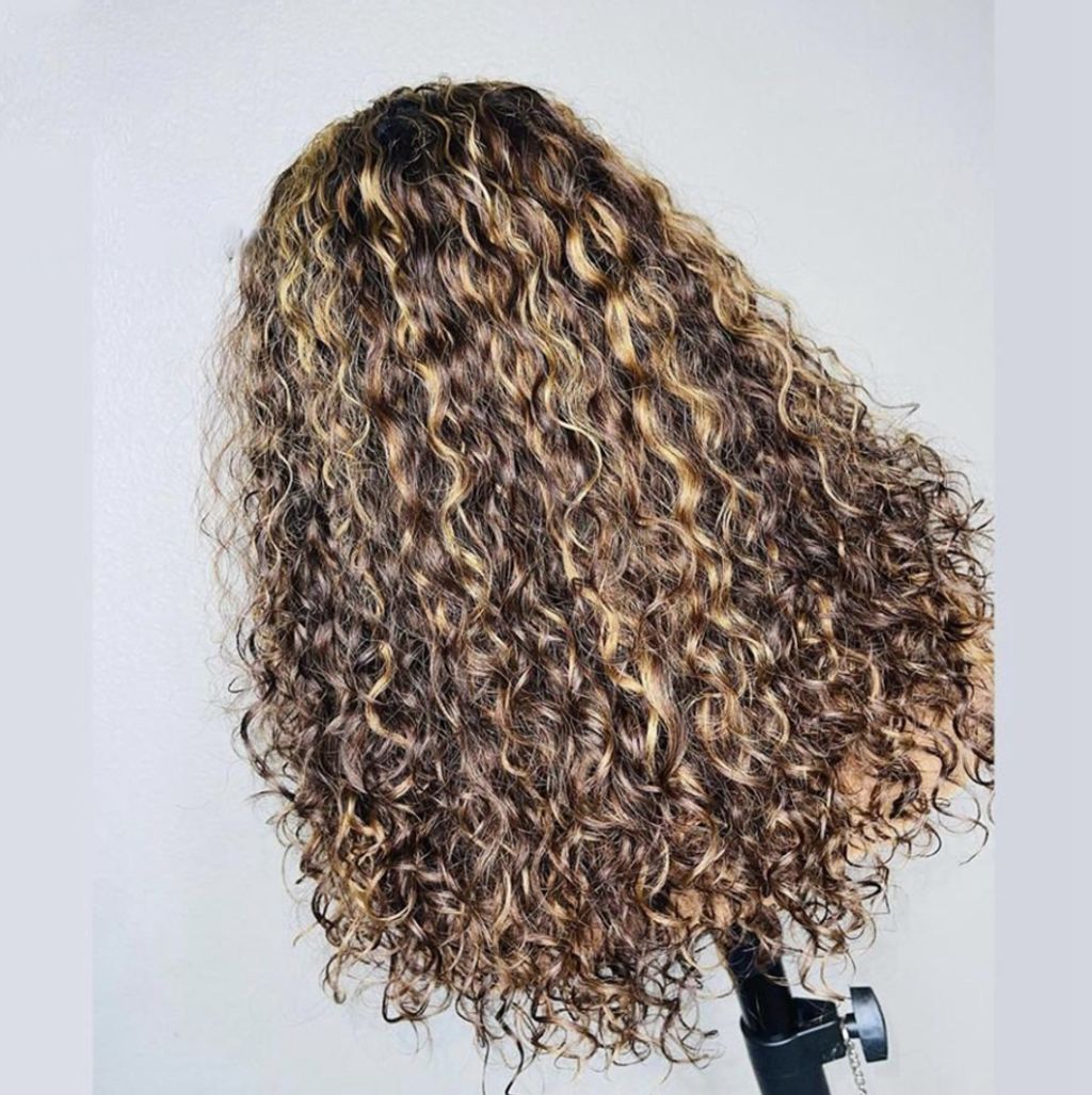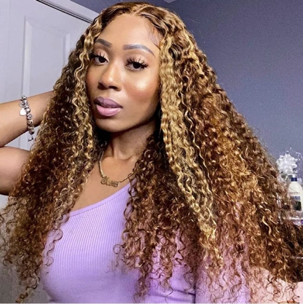 427 Colored Highlight Ombre Brown 200% 13x4 HD Lace Front Human Hair Wig 30 Inch Curly Deep Wave Lace Frontal Wigs For Women