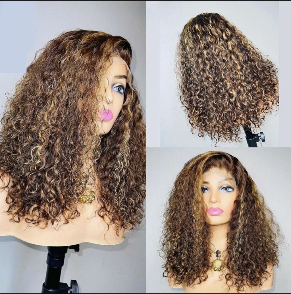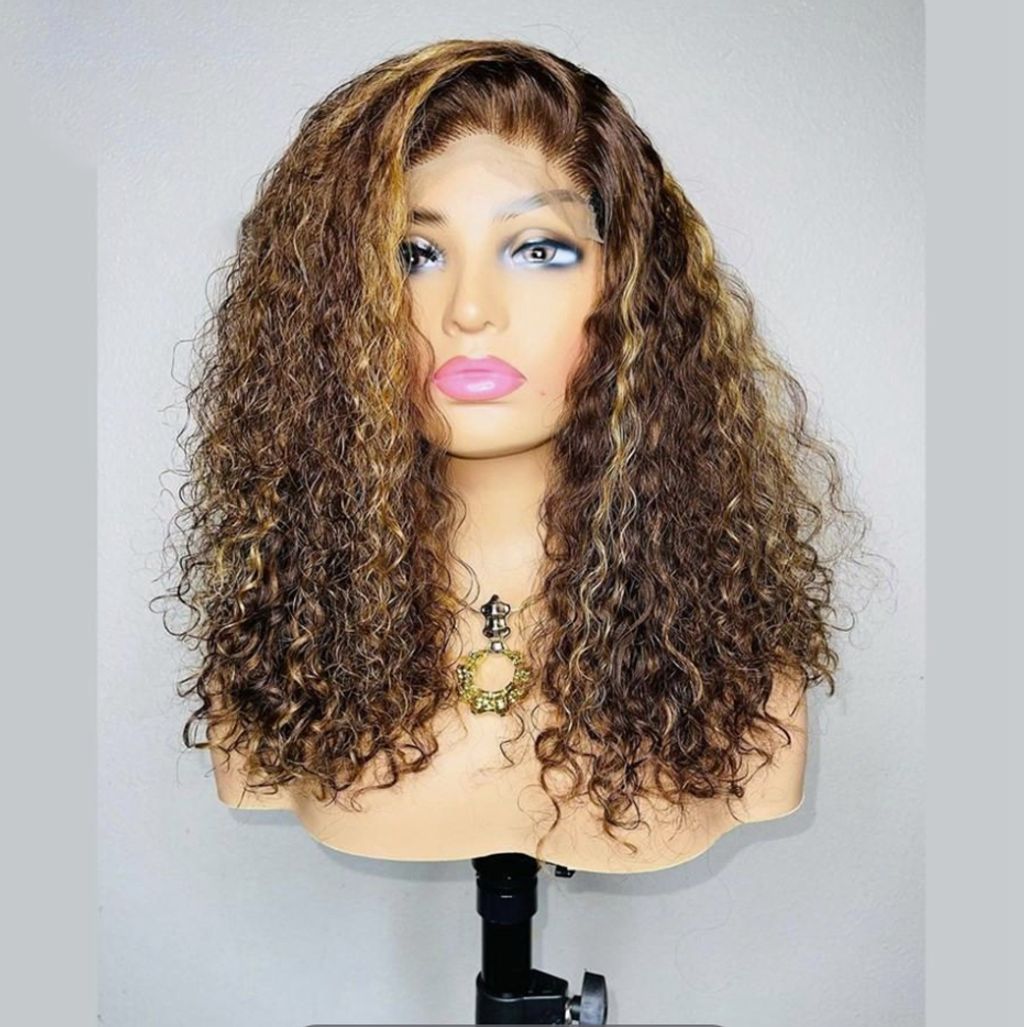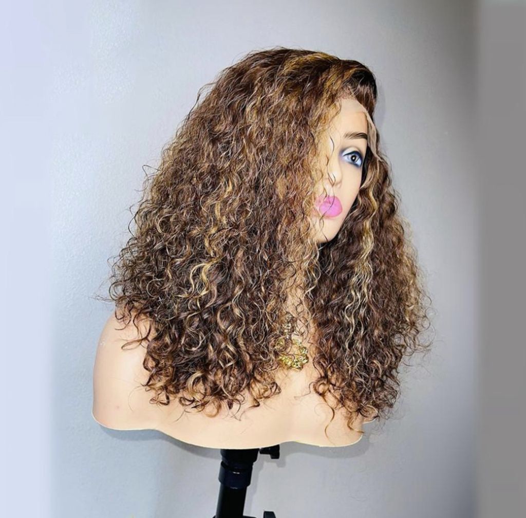 427 Colored Highlight Ombre Brown 200% 13x4 HD Lace Front Human Hair Wig 30 Inch Curly Deep Wave Lace Frontal Wigs For Women