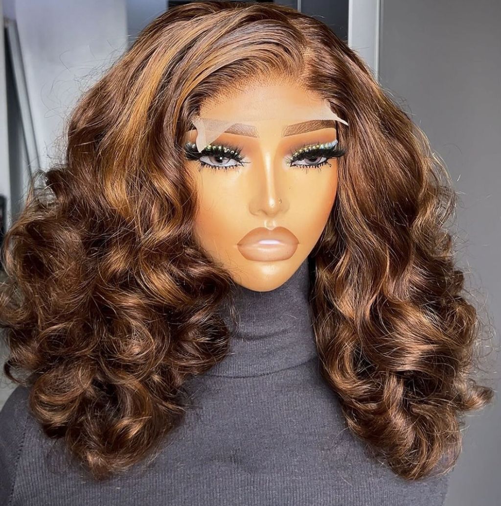 200 Density Bouncy Curl Bouncy wave Highlight honey blonde double drawn Wig Human Hair 5x5 Lace Frontal Wig Preplucked Brazilian HD Transparent Wigs For Women