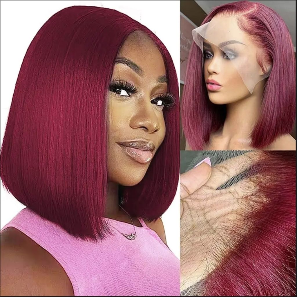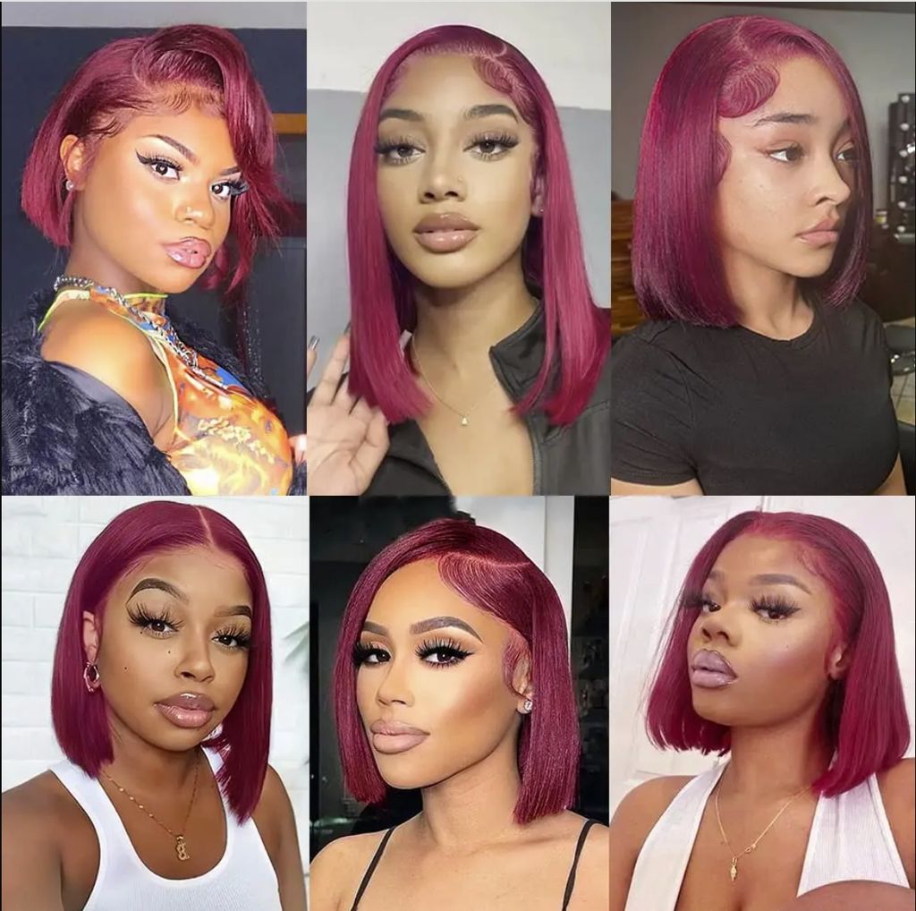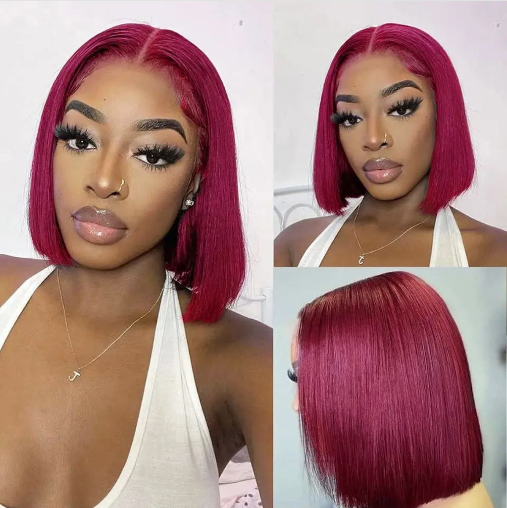 99J Burgundy Straight Bob Wigs Wear and Go Glueless Wigs 13x4 Lace Front Human Hair Wigs Pre Cut No Glue For Women Red Colored