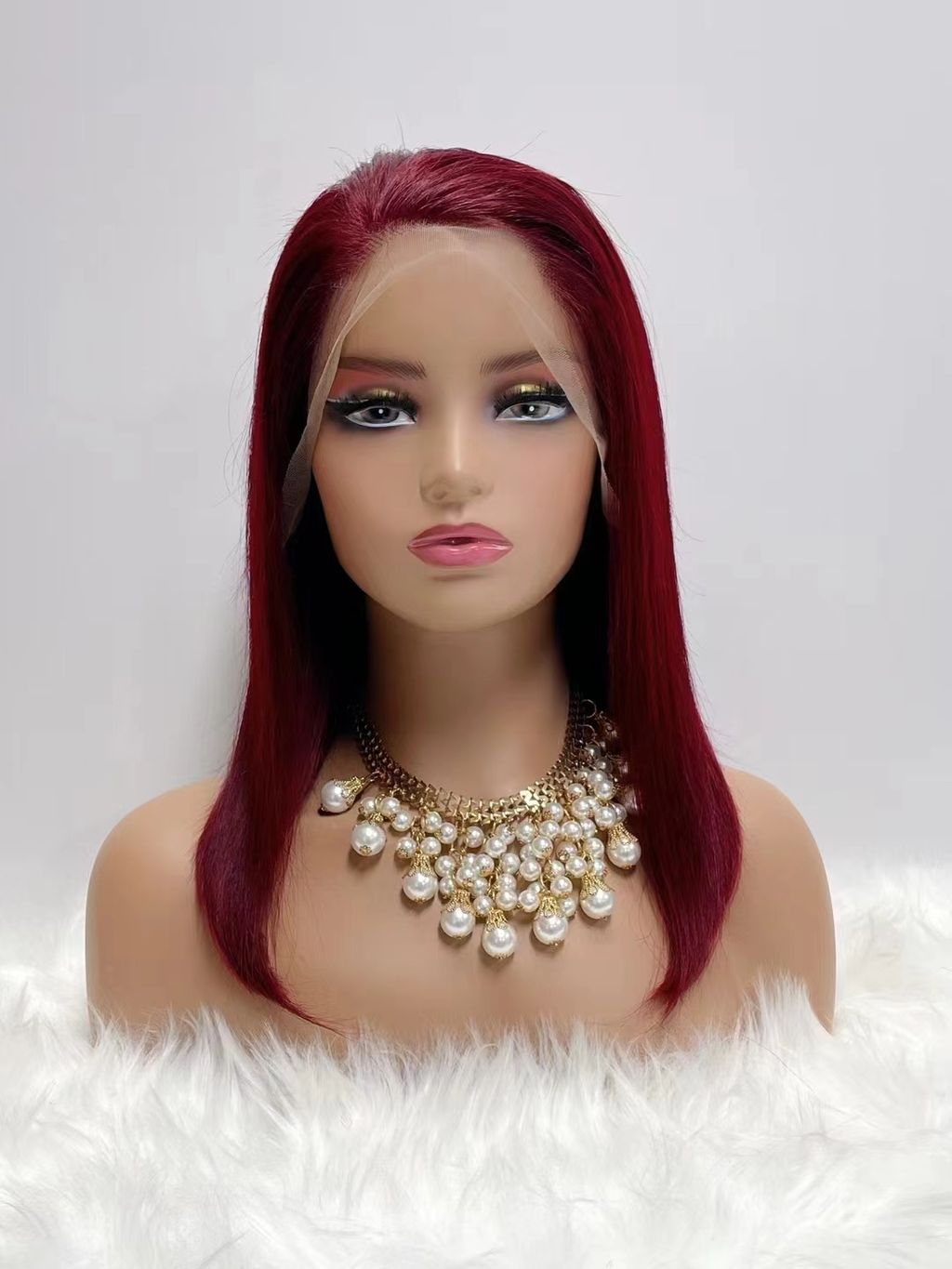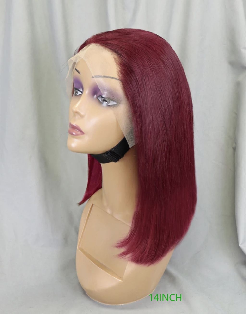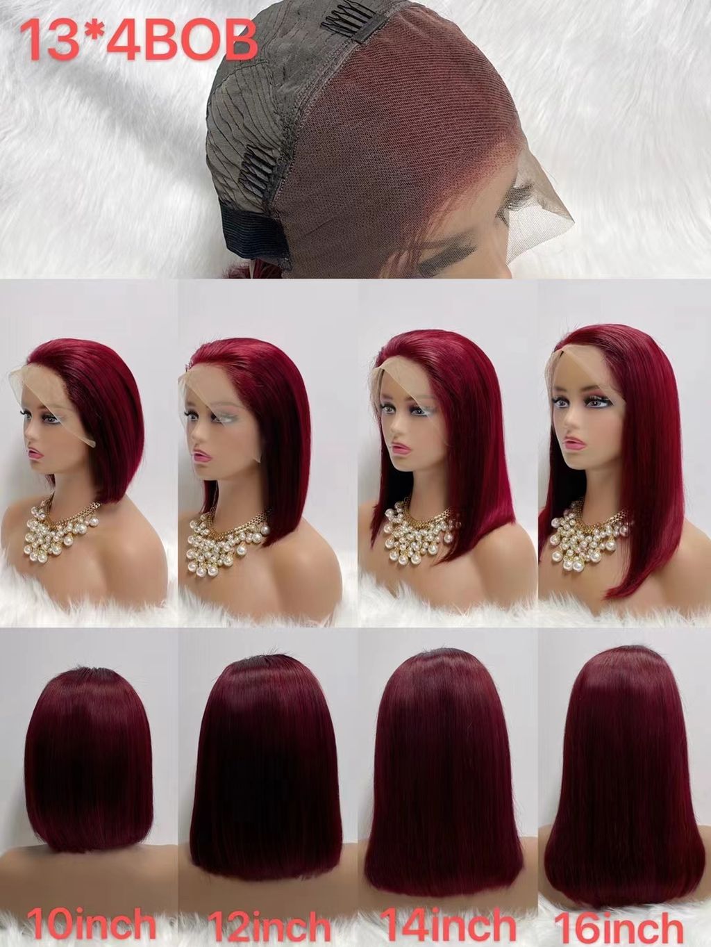 99J Burgundy Straight Bob Wigs Wear and Go Glueless Wigs 13x4 Lace Front Human Hair Wigs Pre Cut No Glue For Women Red Colored