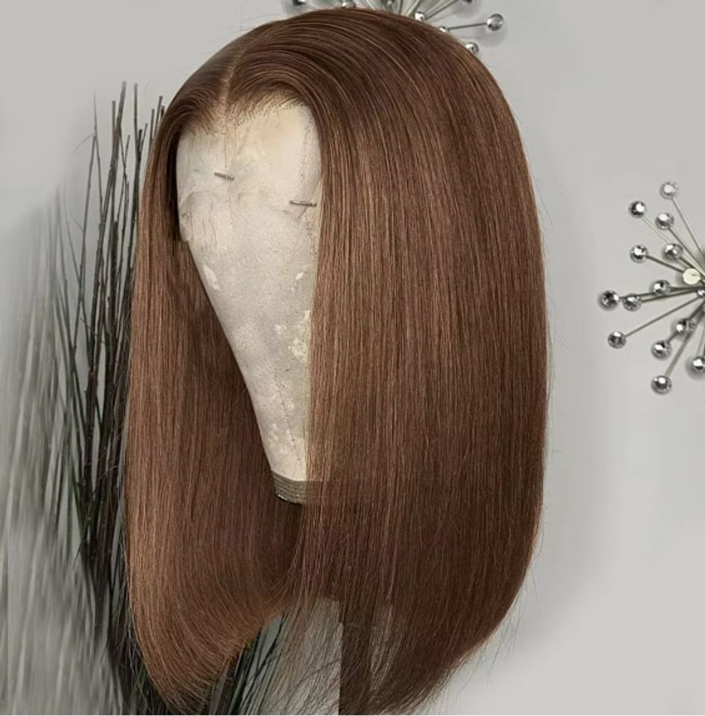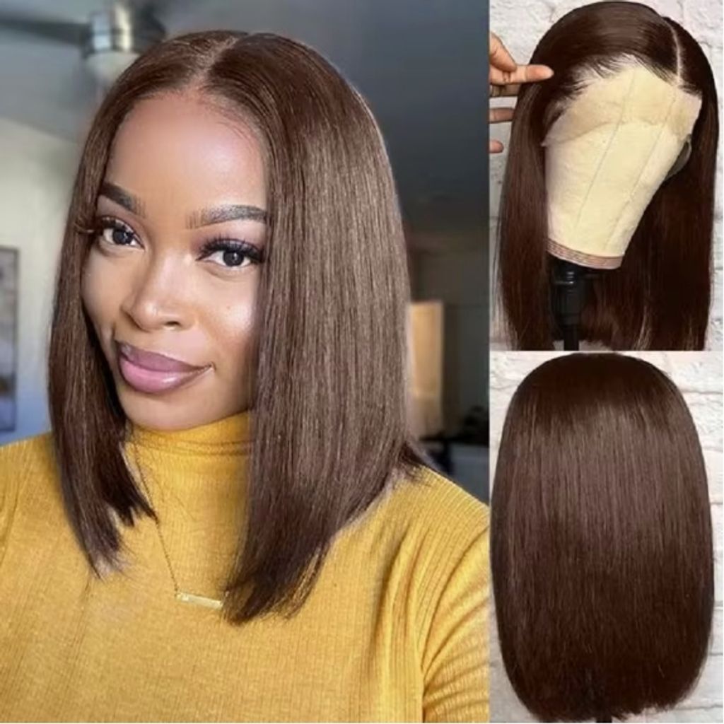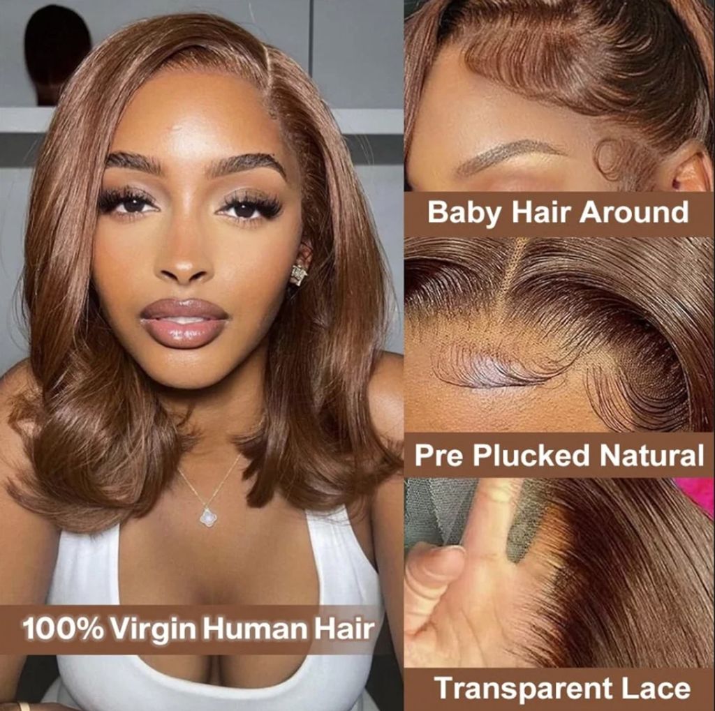 Brown Short Bob Wig Human Hair Straight 13x4 Lace Front Human Hair Wigs Pre Plucked Hairline Free Part Wigs For Women