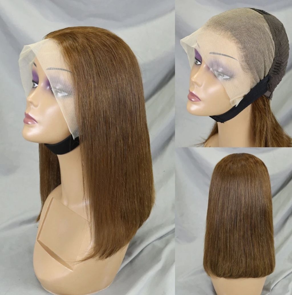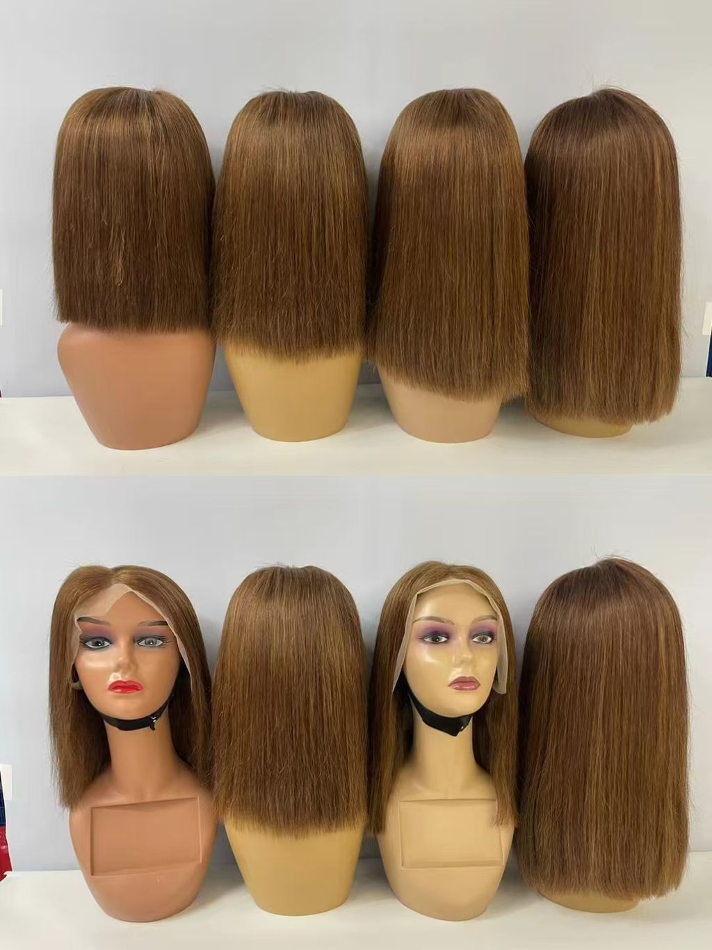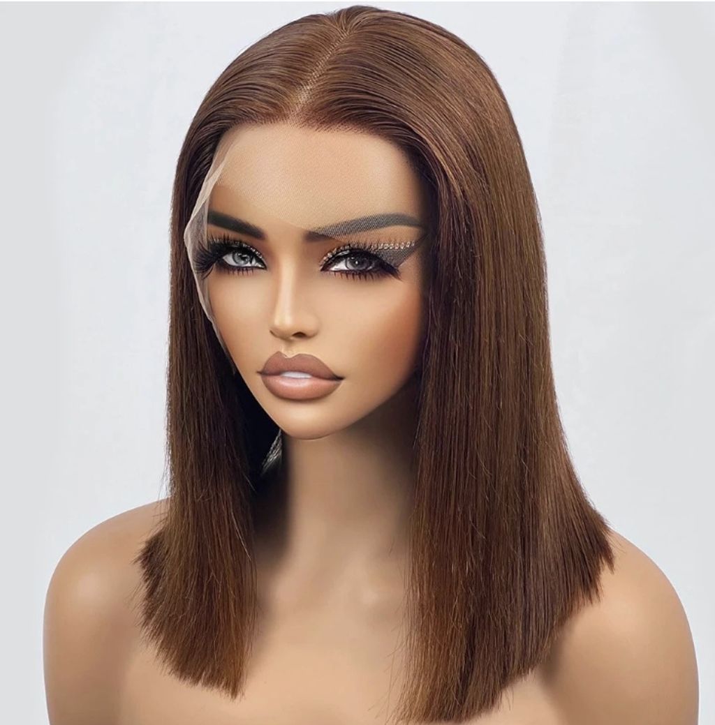 Brown Short Bob Wig Human Hair Straight 13x4 Lace Front Human Hair Wigs Pre Plucked Hairline Free Part Wigs For Women