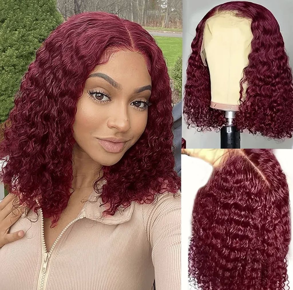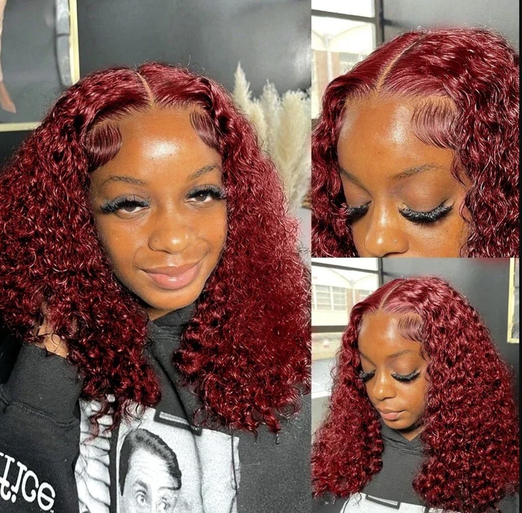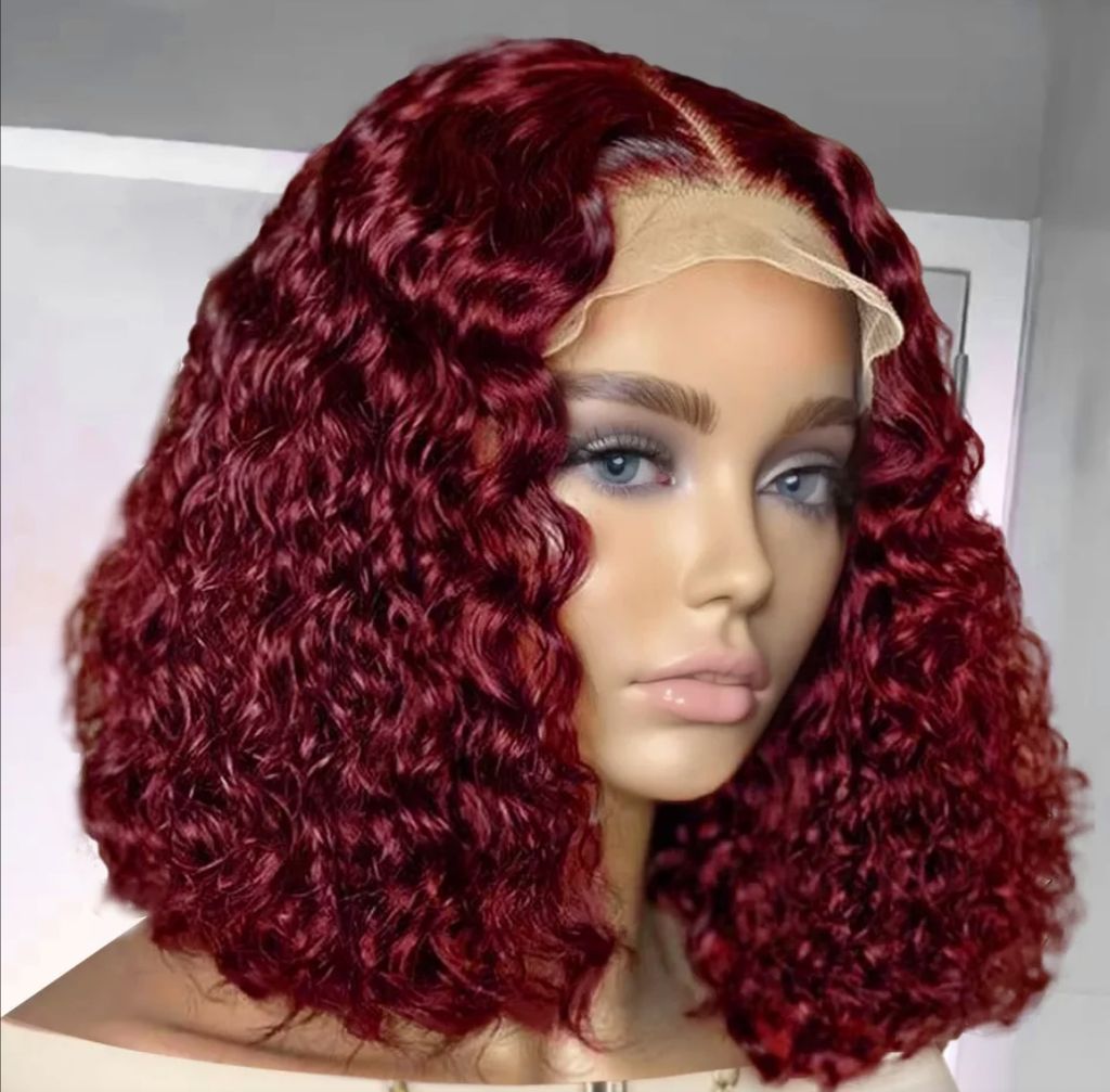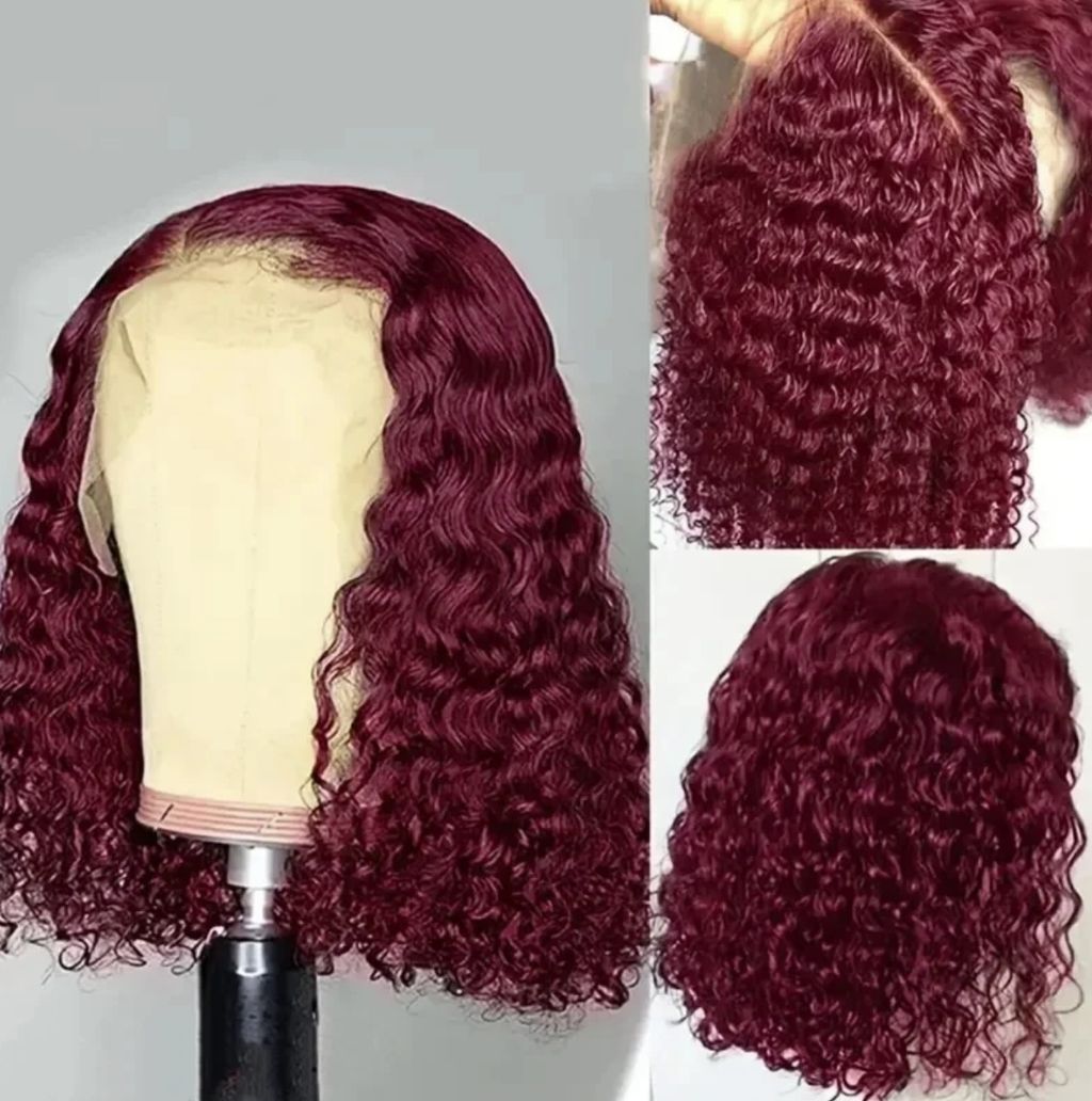 99j burgundy deep wave13x4 Lace closure short Bob 100% Human Hair wig for women jerry curly wigs