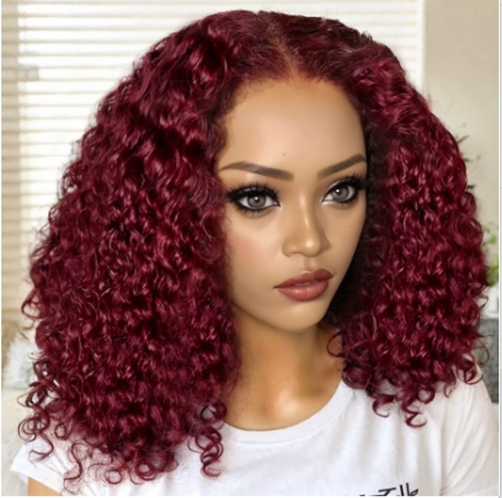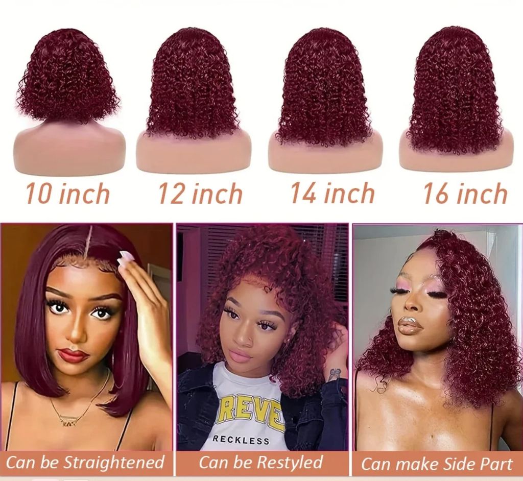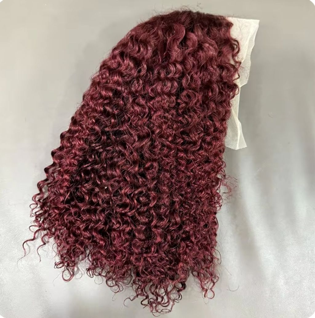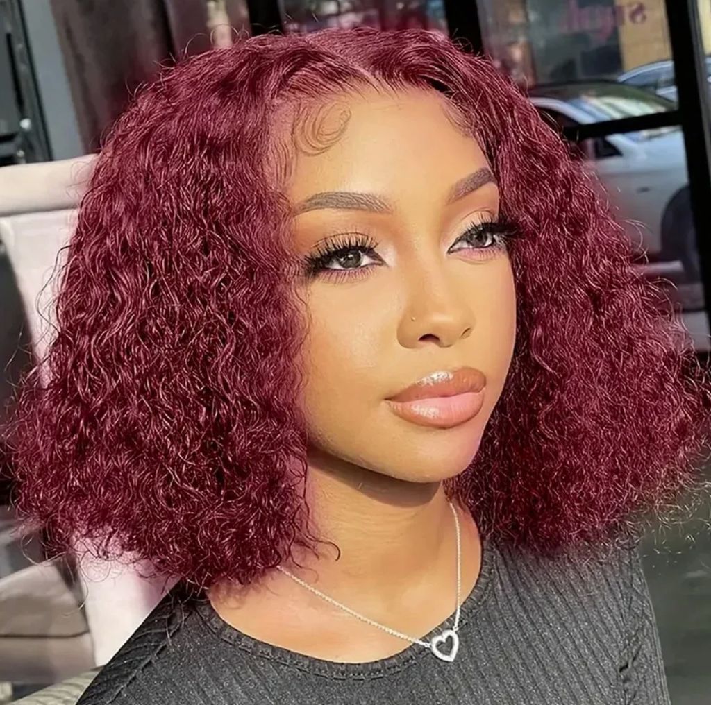 99j burgundy deep wave13x4 Lace closure short Bob 100% Human Hair wig for women jerry curly wigs