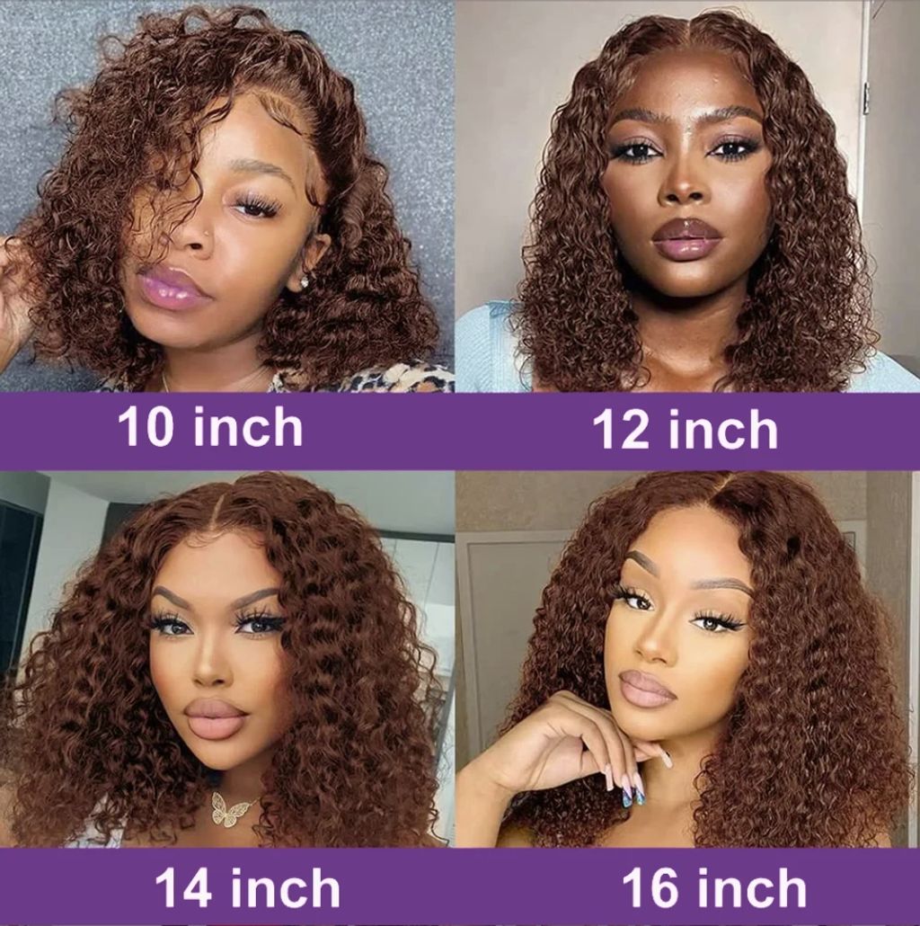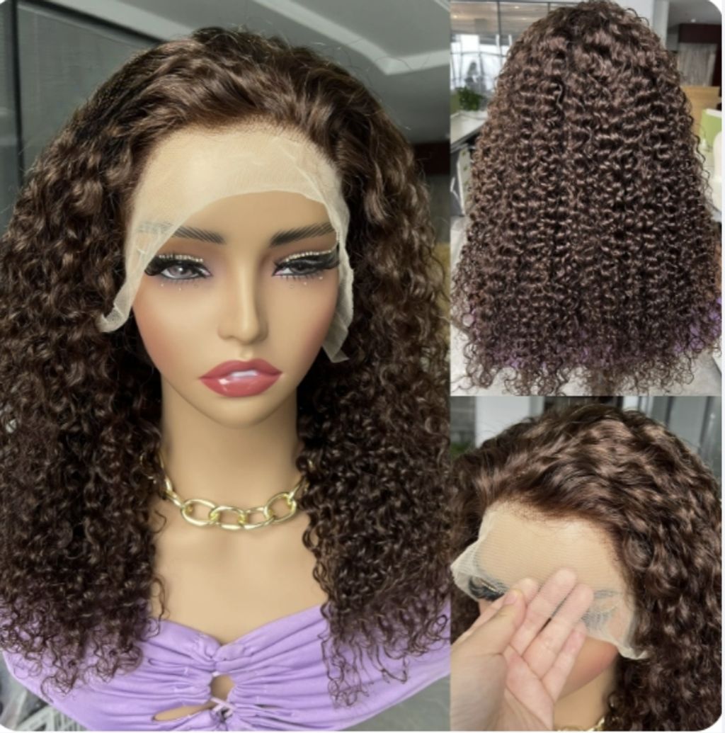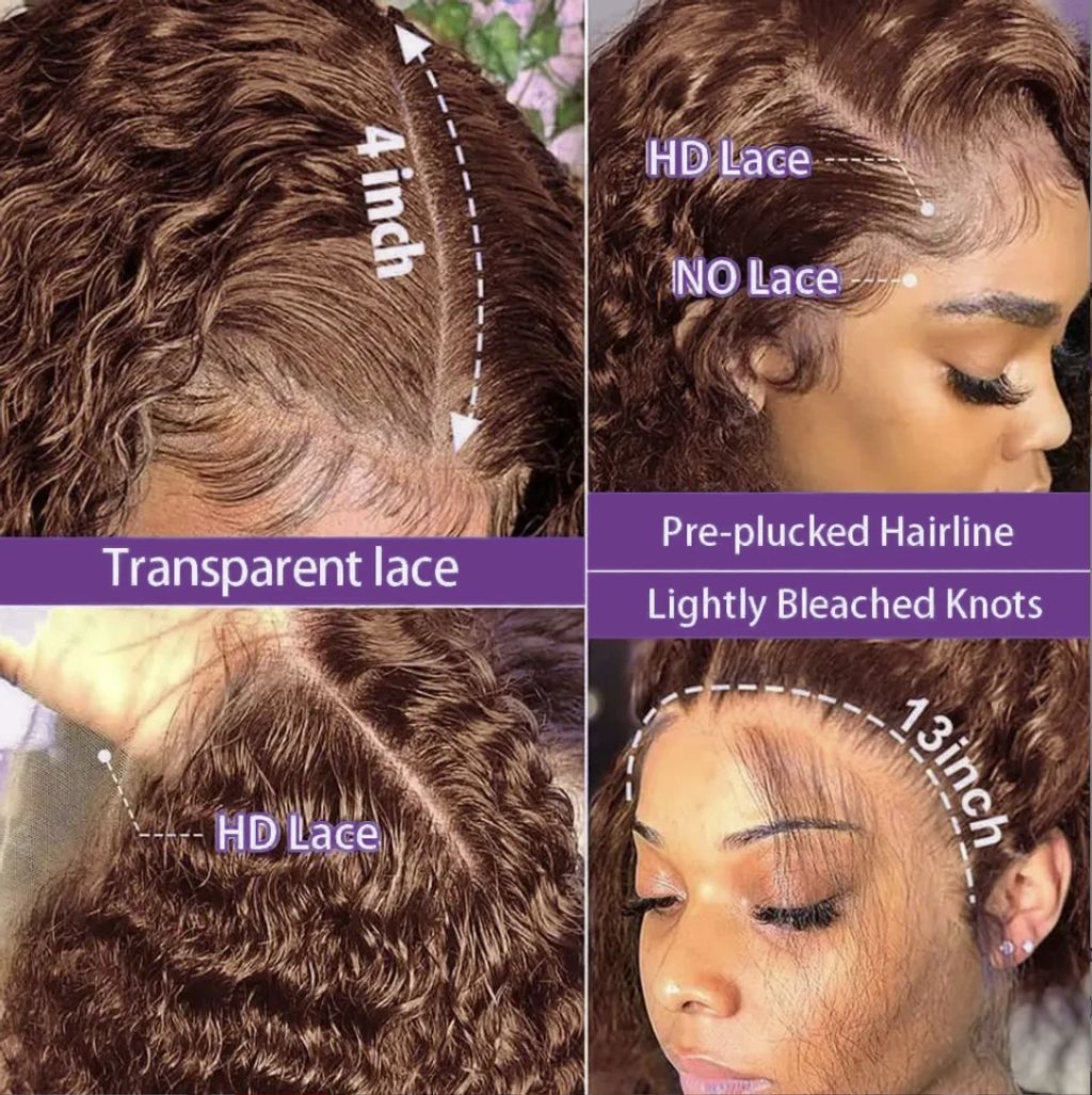Chocolate Brown Bob Wigs 200% Density Water Wave 13x4 Lace Frontal Wigs Brazilian Human Hair Pre Plucked HD Transparent Lace Wig