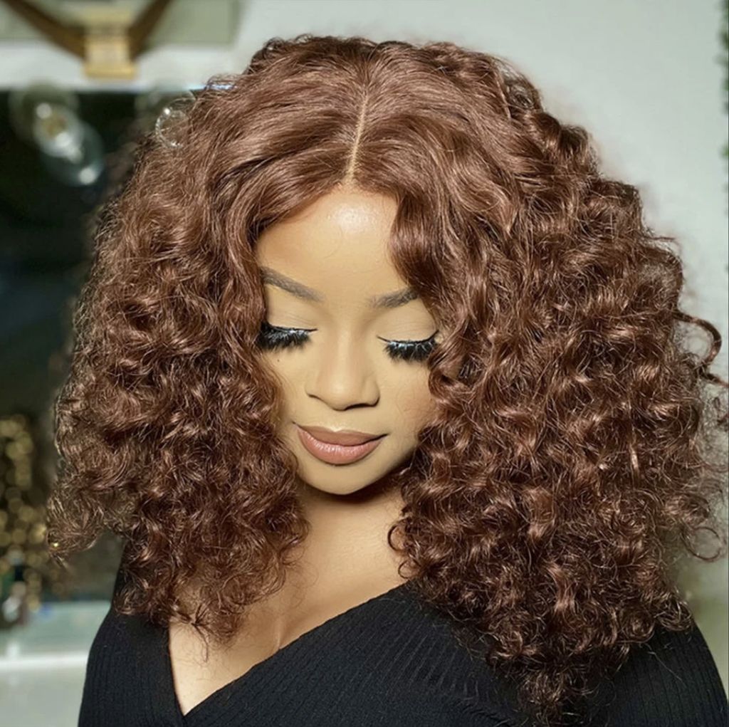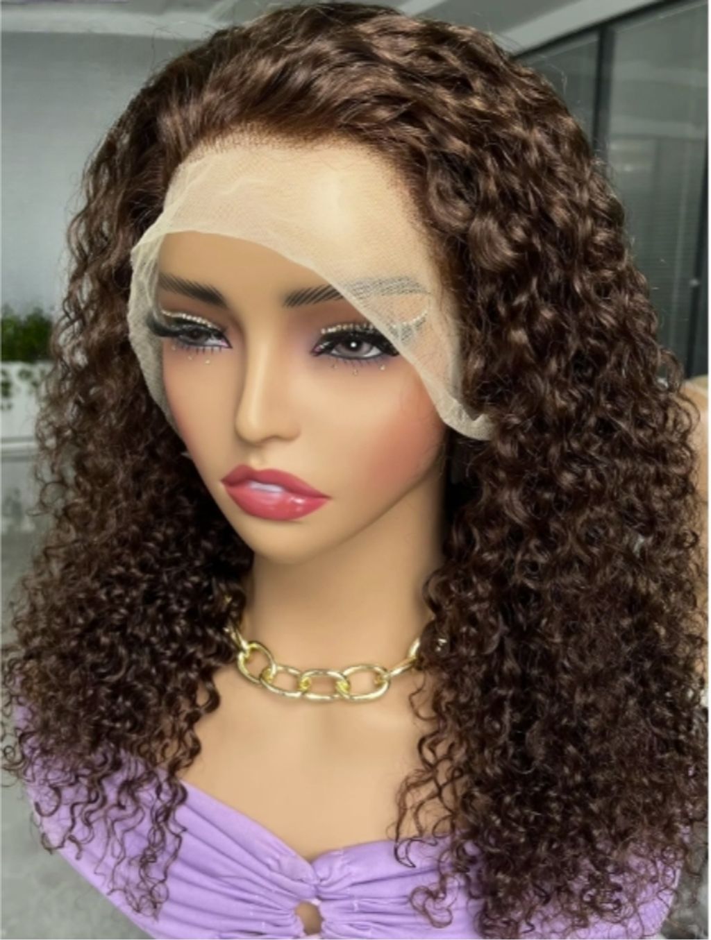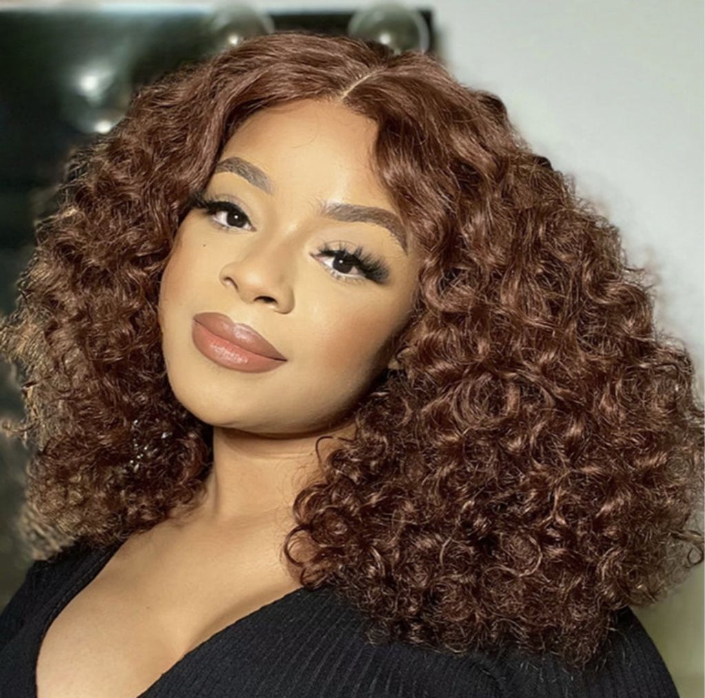 Chocolate Brown Bob Wigs 200% Density Water Wave 13x4 Lace Frontal Wigs Brazilian Human Hair Pre Plucked HD Transparent Lace Wig