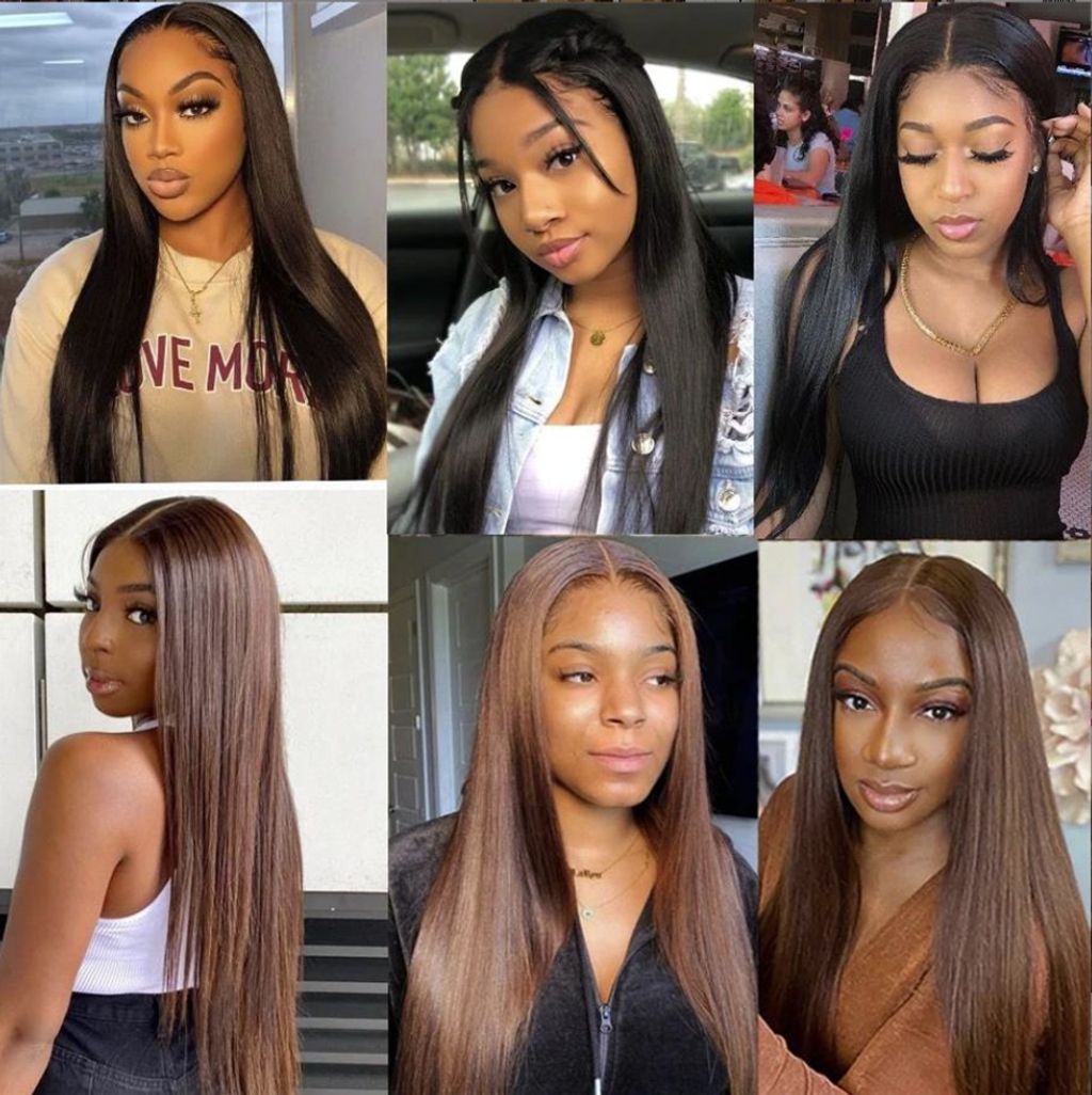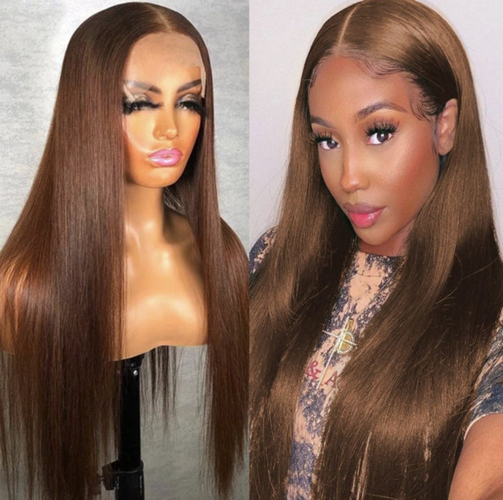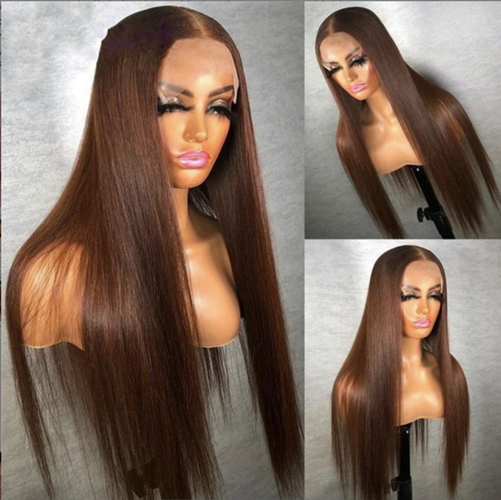 Chocolate Brown 13x4 Lace Front Wigs Straight Human Hair Wigs 13X4 Frontal Wig Colored Human Hair For Women 复制 复制