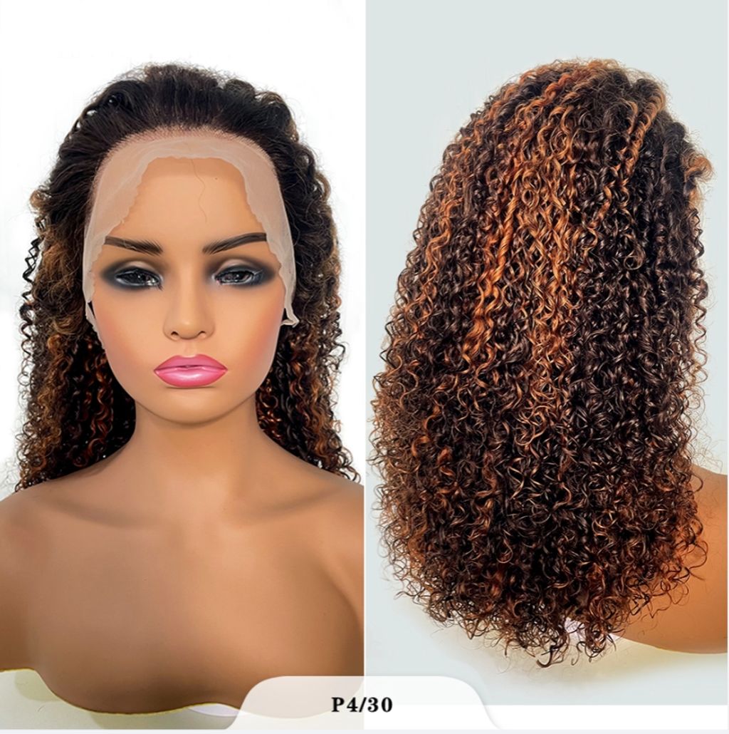 16A Ombre Double Drawn Hair pixie Curly Lace Frontal Wigs 13x4 HD Lace pixie Curly Wear and Go Glueless Wigs Pre Plucked
