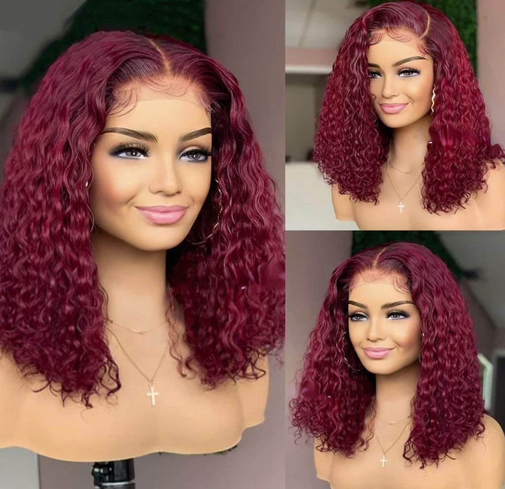 99j deep wave13x4 Lace closure short Bob 100% Human Hair wig for women jerry curly wigs