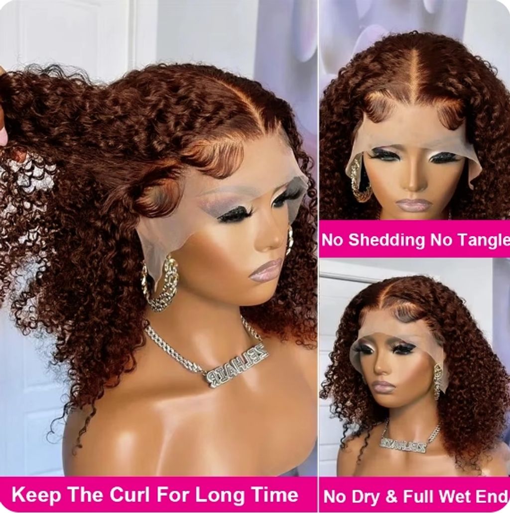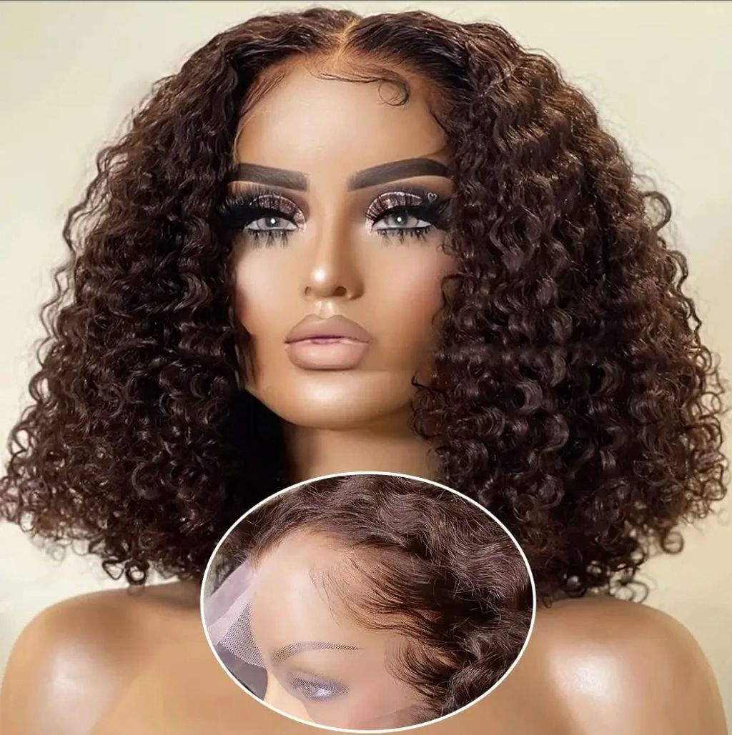 200% Density Dark Brown Bob Wigs Water Wave 13x4 Lace Frontal Wigs Brazilian Human Hair Pre Plucked HD Transparent Lace Wig
