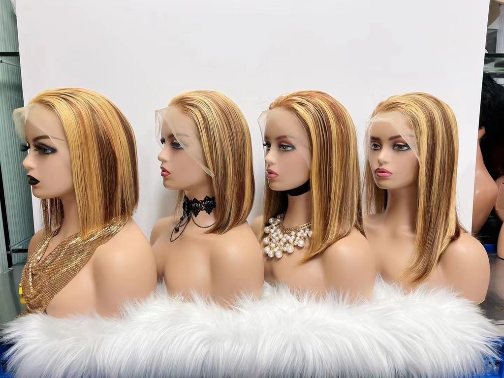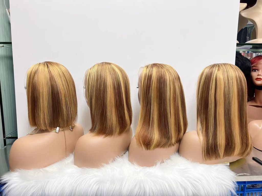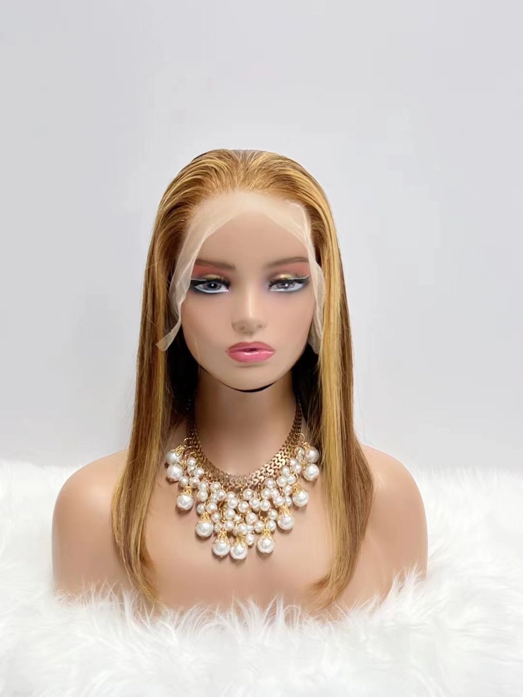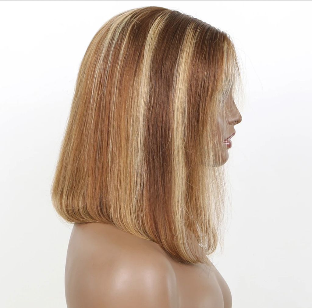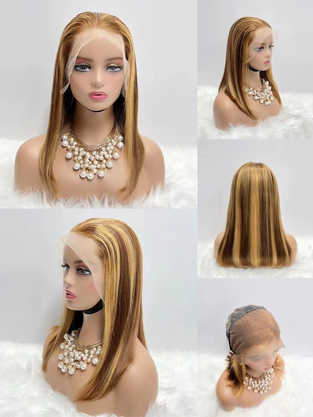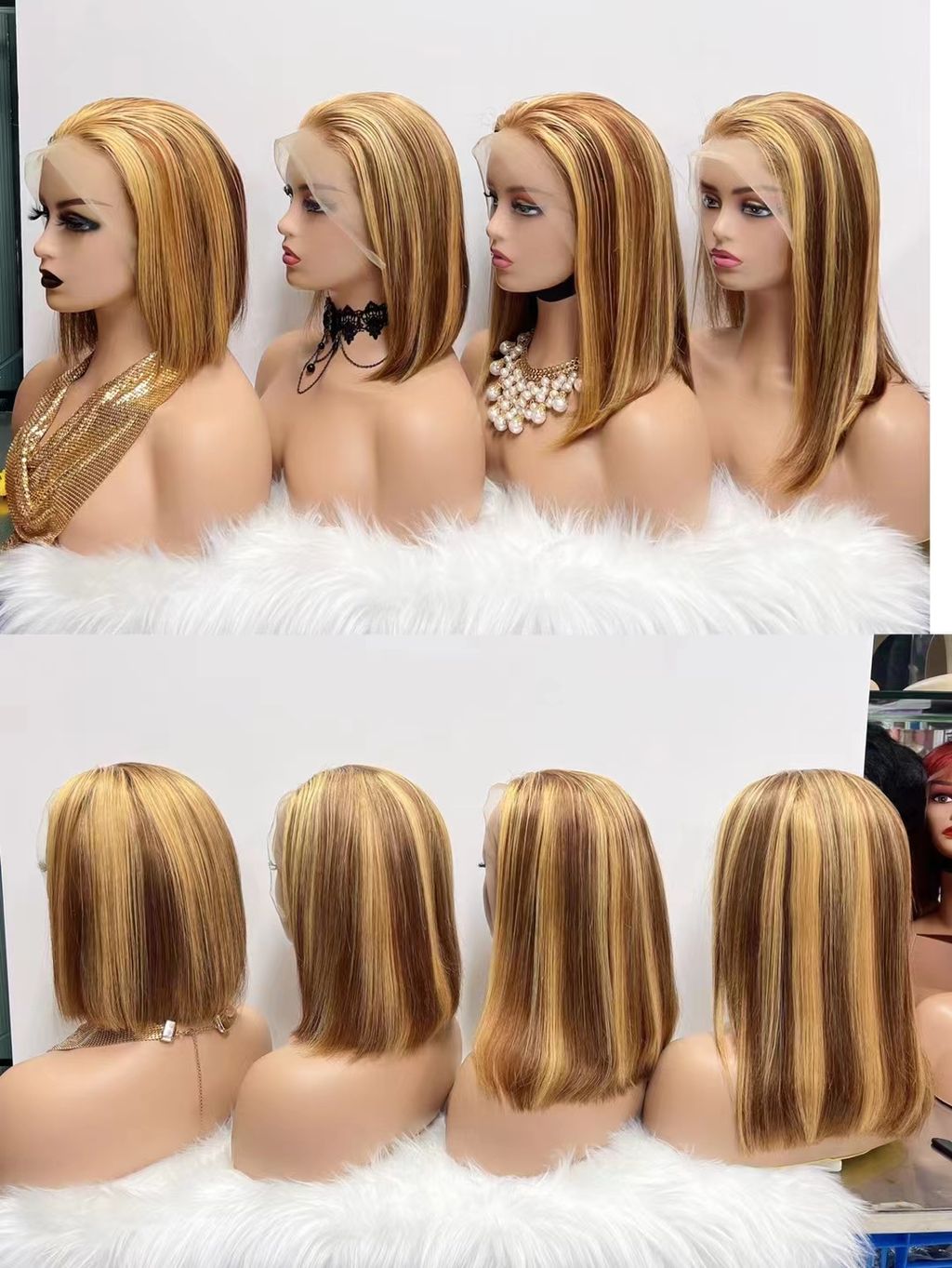 Honey Blonde colored P4 27 pianio 13x4 Lace closure short Bob 100% Human Hair wig for women