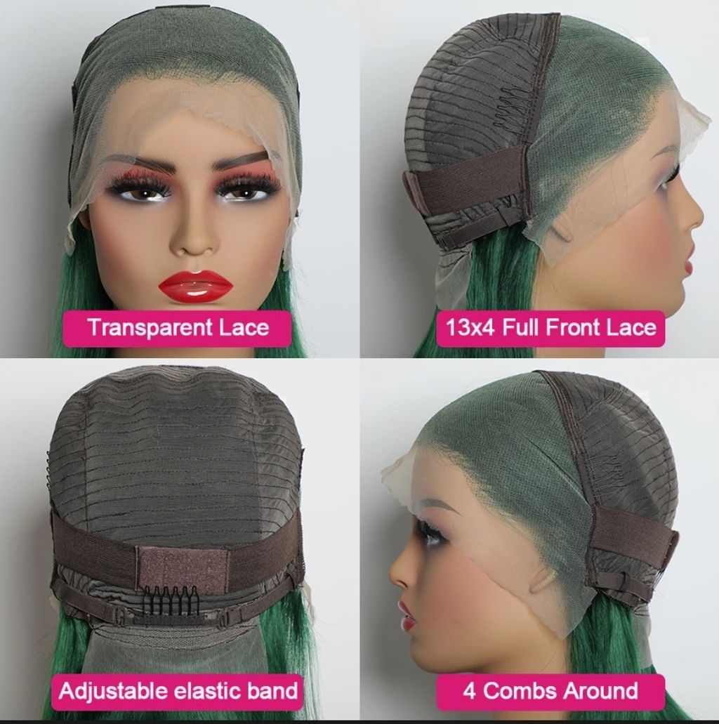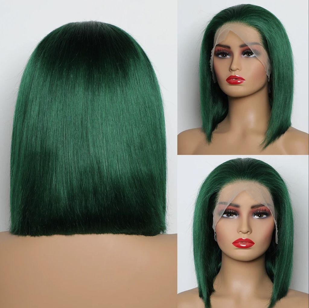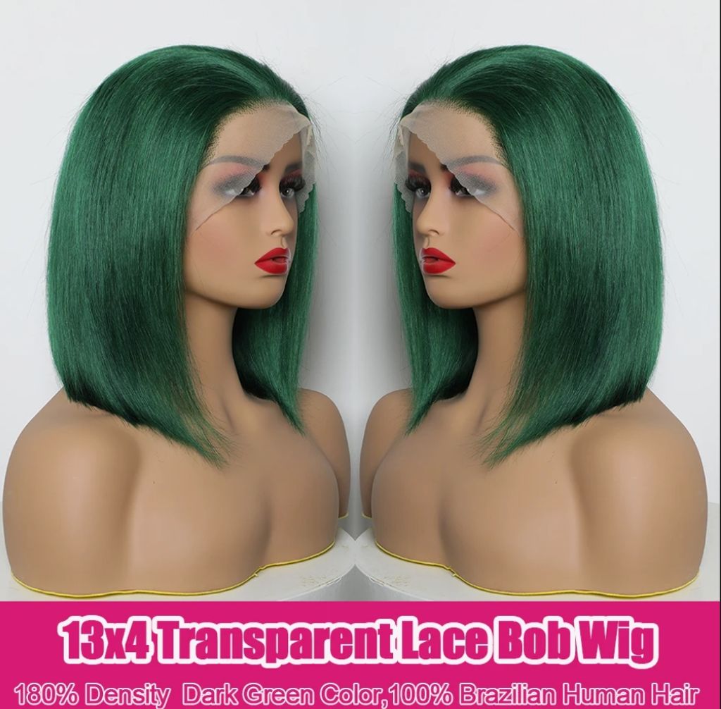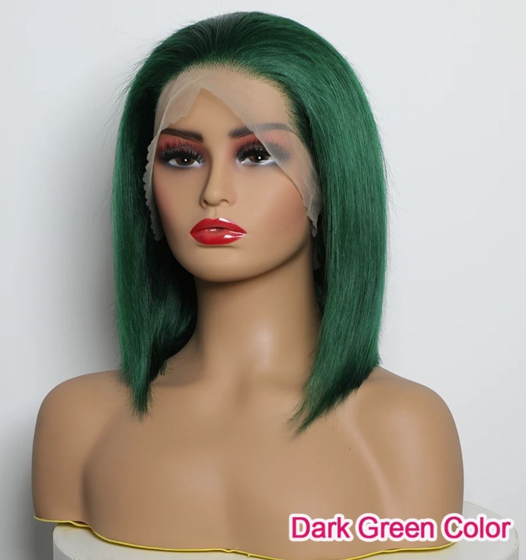 Short Straight Lace Bob Human Hair Wig Dark Green Color 180% Density 13x4 Transparent Lace Front Wig Brazilian Remy Lace Bob Wig
