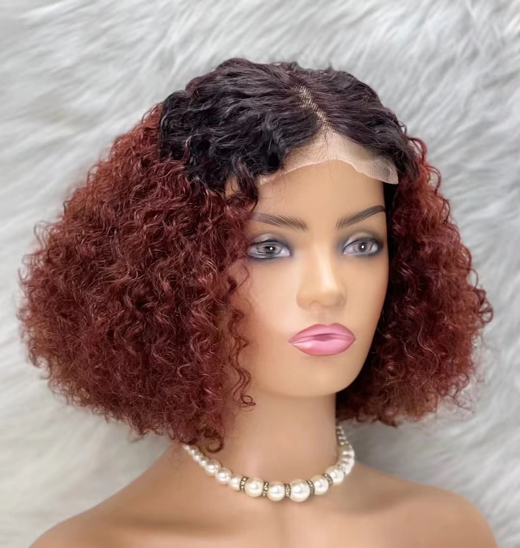 Ombre 1b 33 Colored Short Bob Loose Wave Lace Front Human Hair Wigs Burgundy 4x4 Transparent Lace Front Wigs For Women
