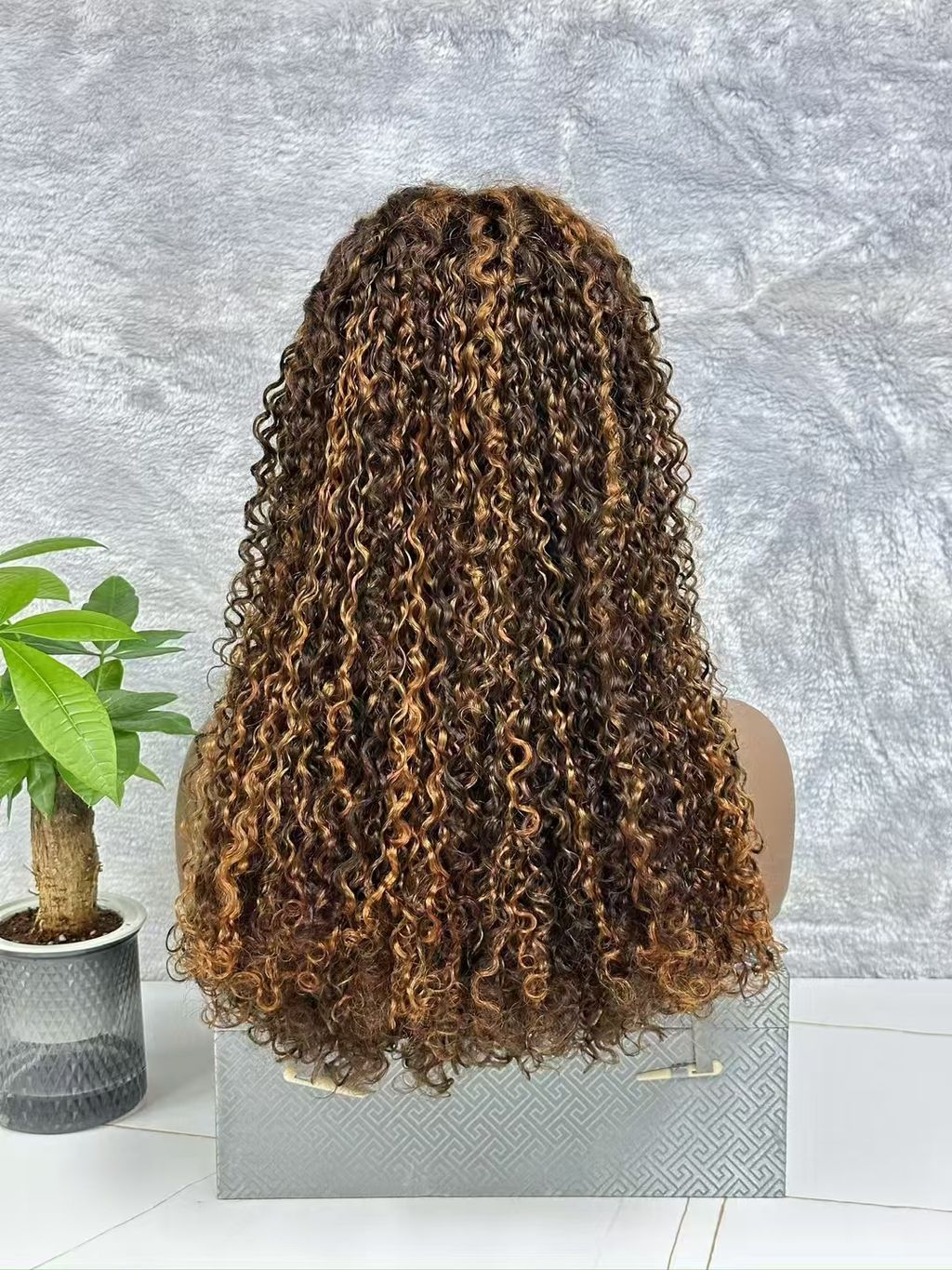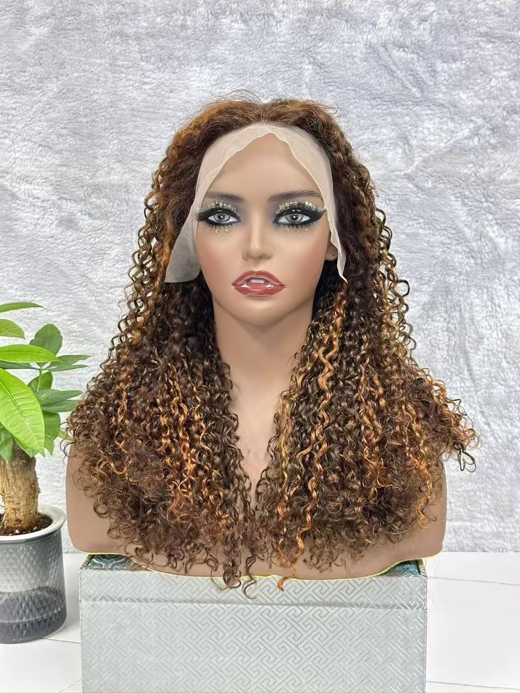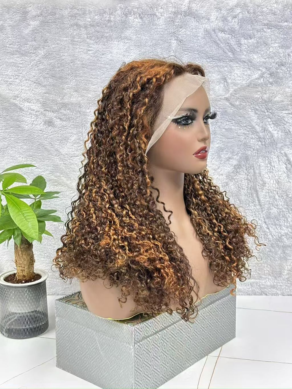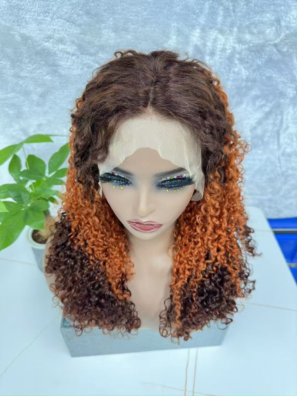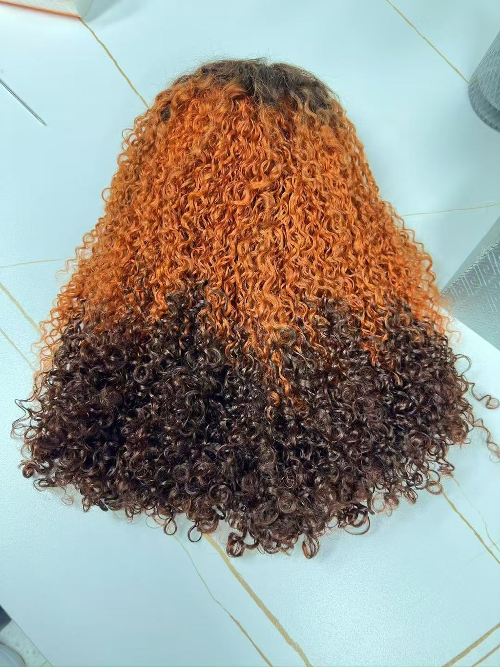 Top Quality Double Drawn Pixie Curls wig Piano Color 13x4 Lace frontal Pixie Curly Wigs For African Woman With Different Size