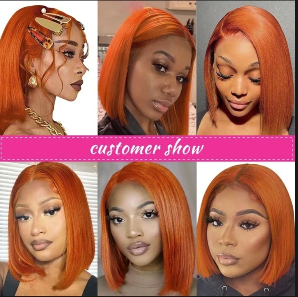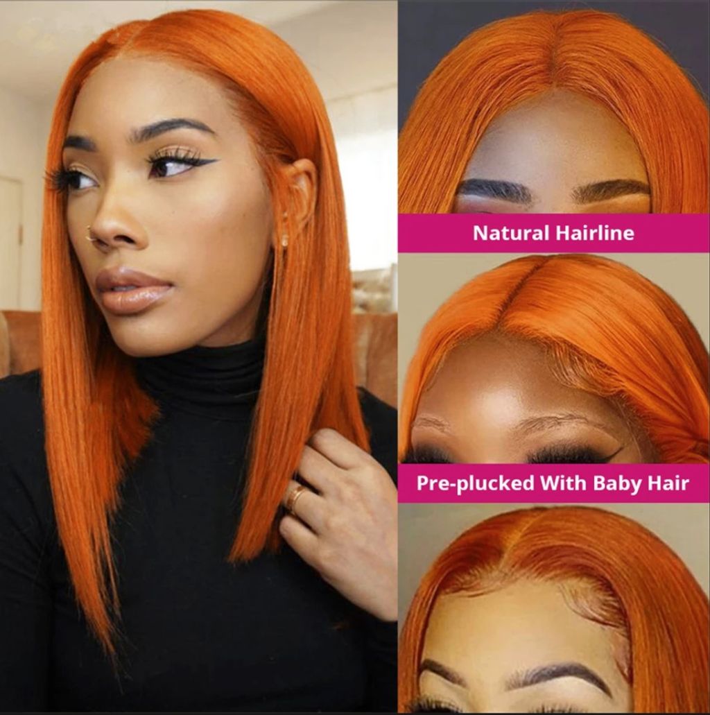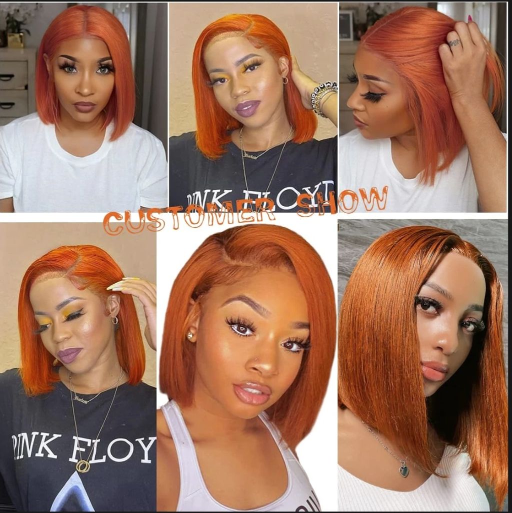 Ginger Orange Bob Wig Human Hair 13X4 Lace Wigs Human Hair Bob Wig 350 Color Lace Front Wigs Straight Bob Lace Front Wigs