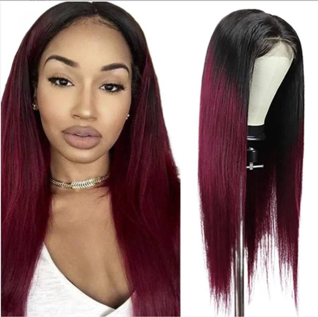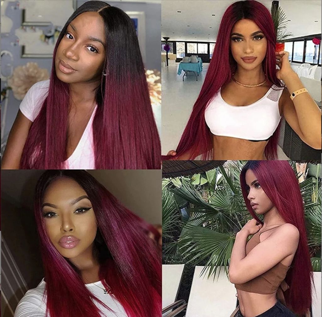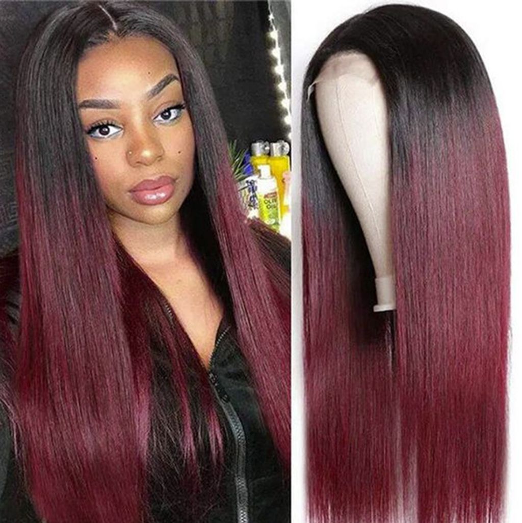 1B 99J Ombre Straight Wigs Human Hair 4x4 Closure Wig Brazilian Burgundy 13x4 Lace Front 32Inch Wigs For Black Women Pre Plucked