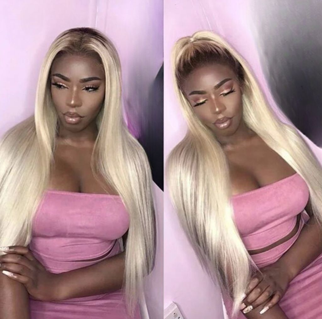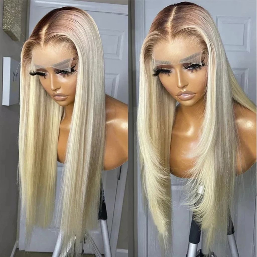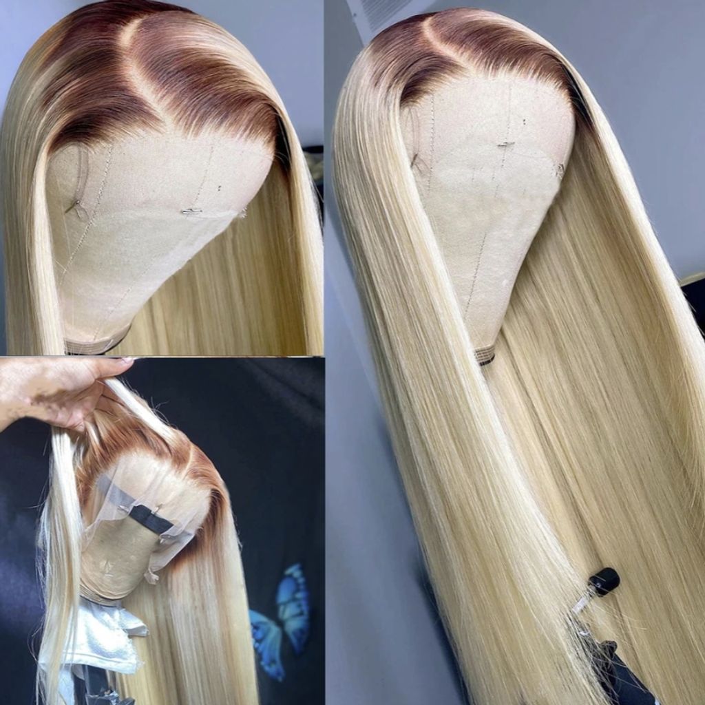 13X4 Ombre Blonde Frontal Wig Human Hair Remy Straight Transparent Lace 4 613 Lace Front Wig For Women