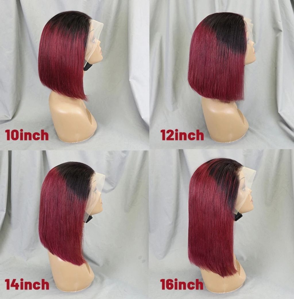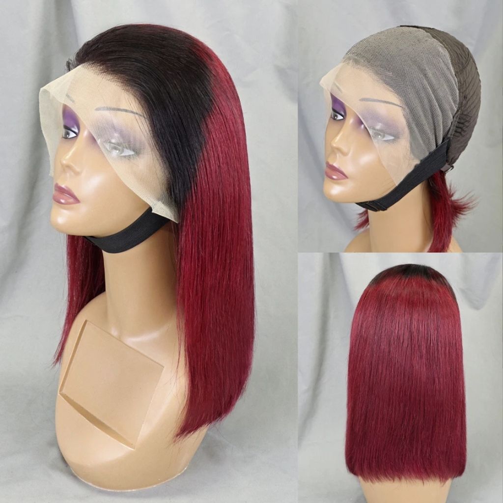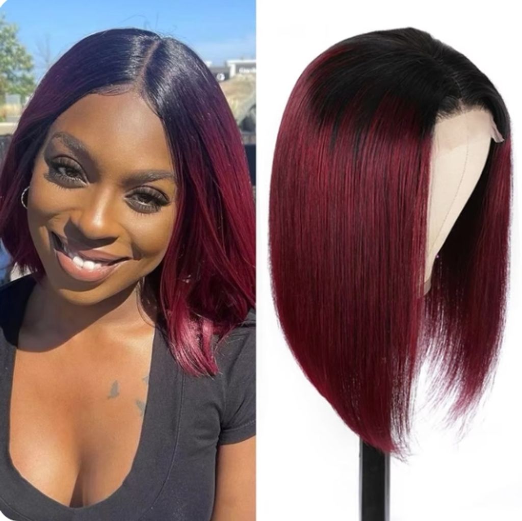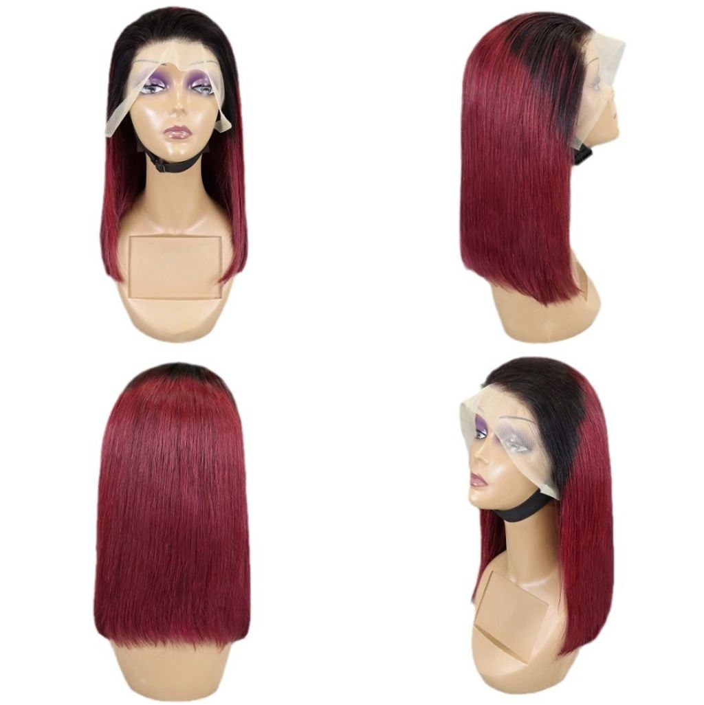 Ombre Bone Burgundy Straight Short Bob Wig Human Hair Wigs For Women Burgundy Transparent 13x4 Lace Frontal Wigs 1B 99J 4x4 Bob Wigs