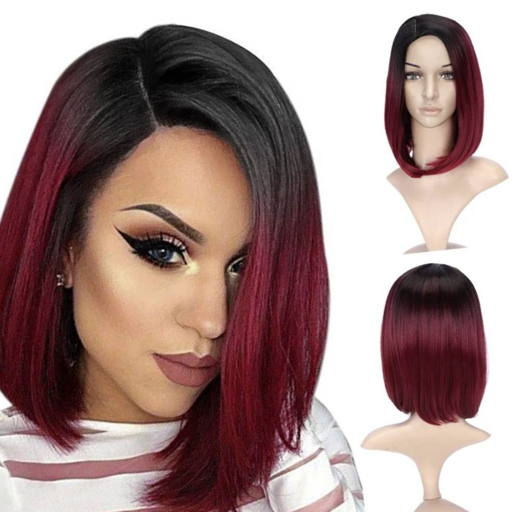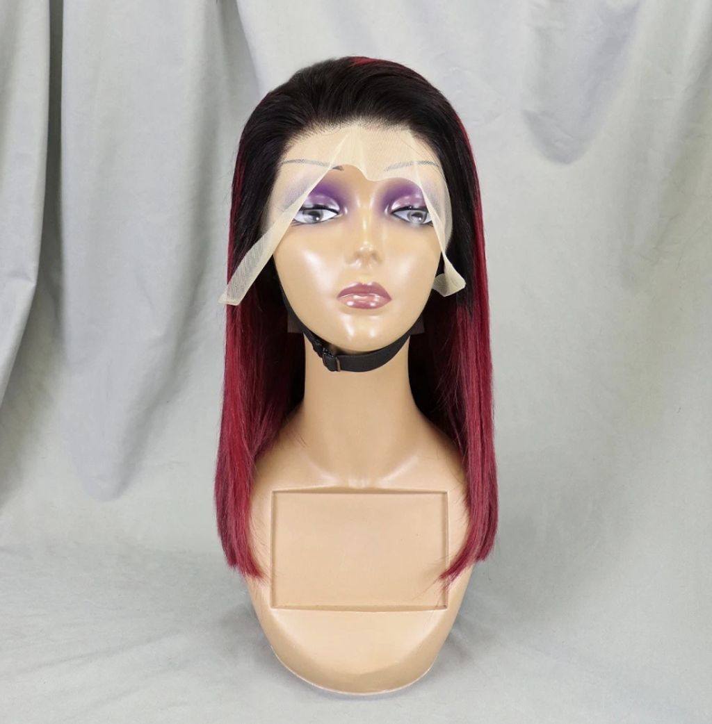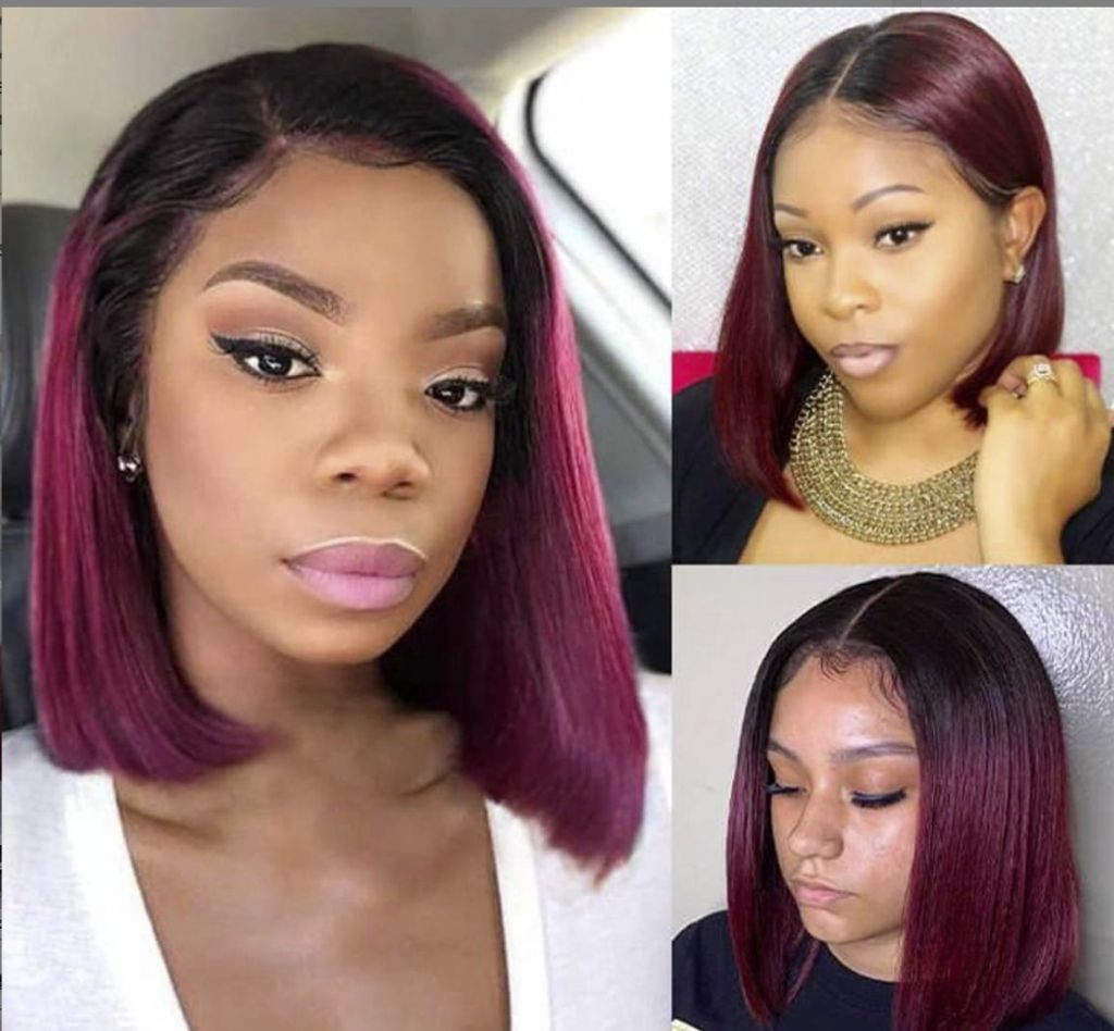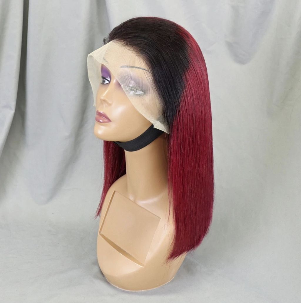 Ombre Bone Burgundy Straight Short Bob Wig Human Hair Wigs For Women Burgundy Transparent 13x4 Lace Frontal Wigs 1B 99J 4x4 Bob Wigs