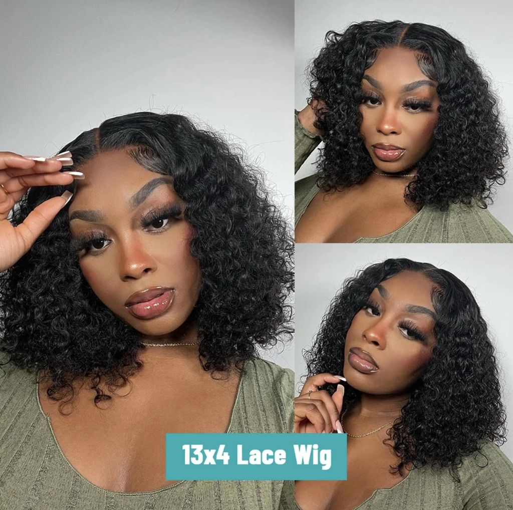 Supper Double Drawn 13x6 Brazilian Loose Deep Wave 13x4 Lace Frontal Human Hair Wigs 180% Transparent Water Curly Short Bob Wig Remy