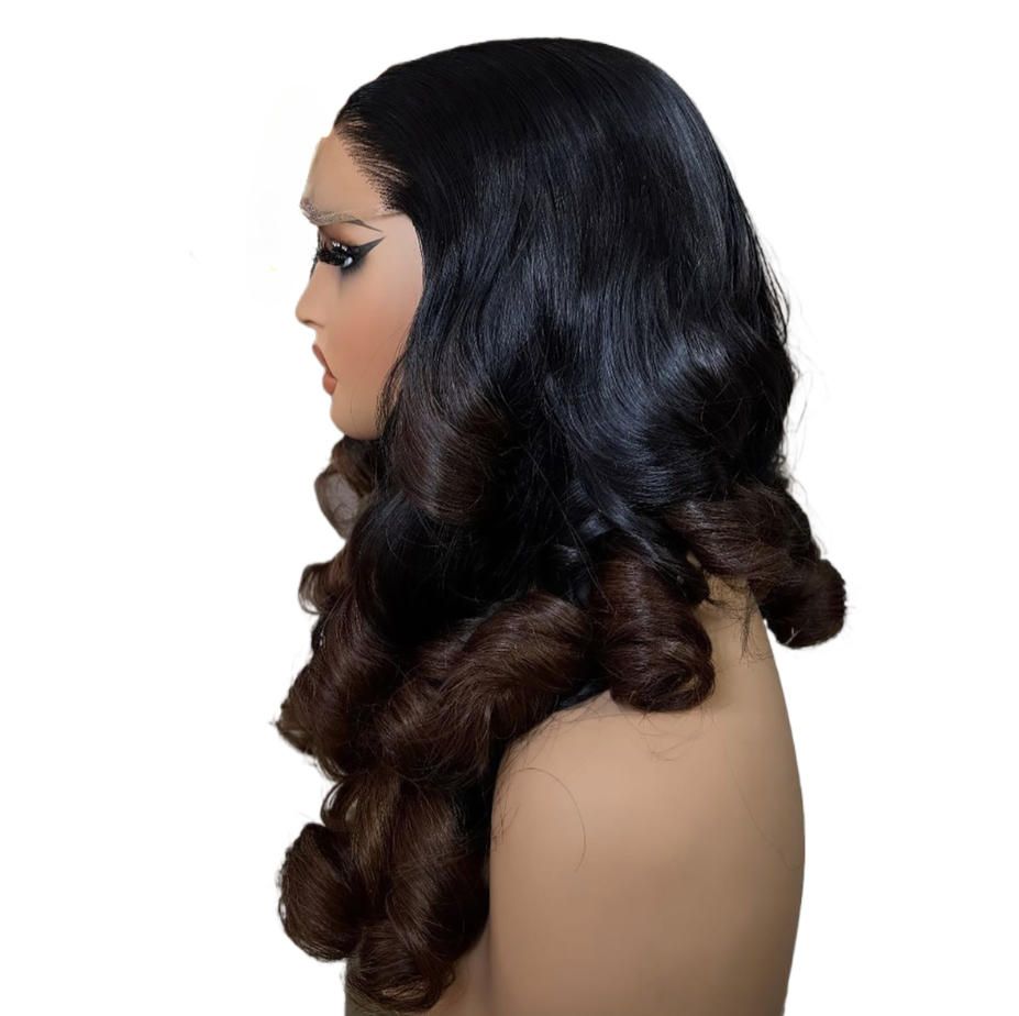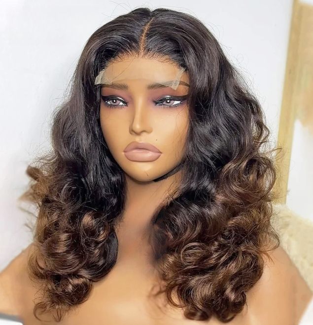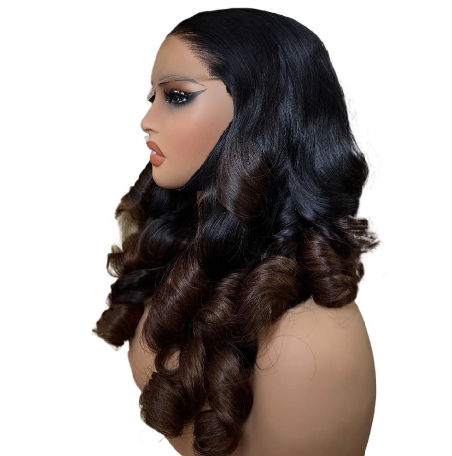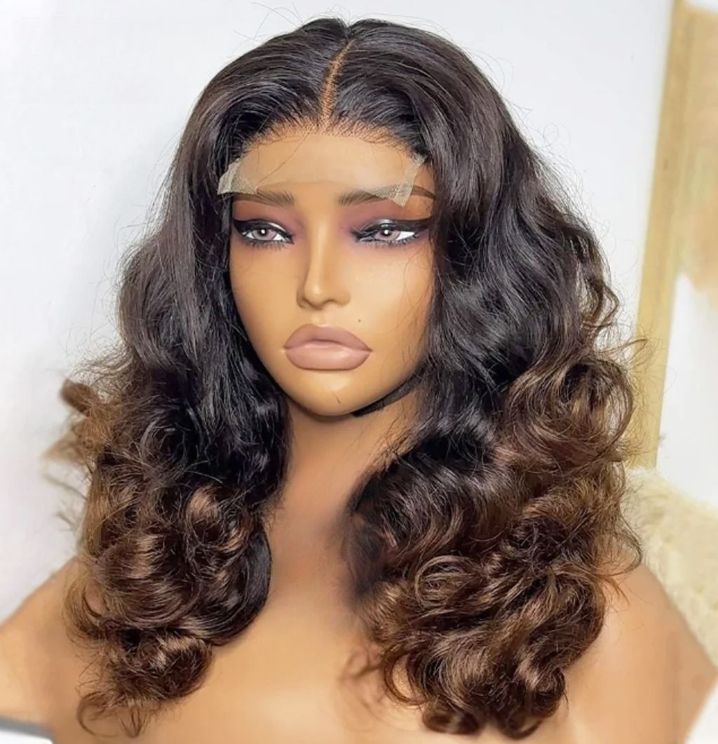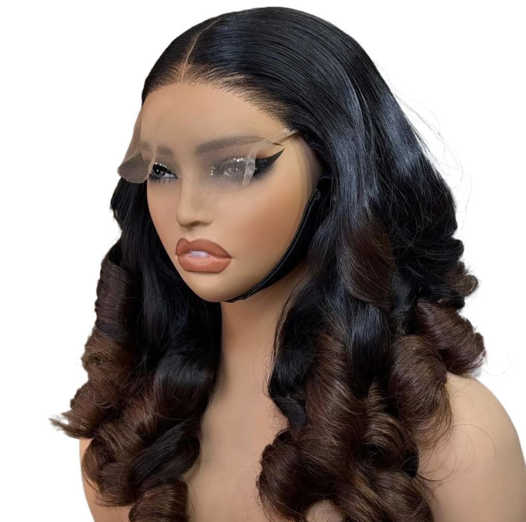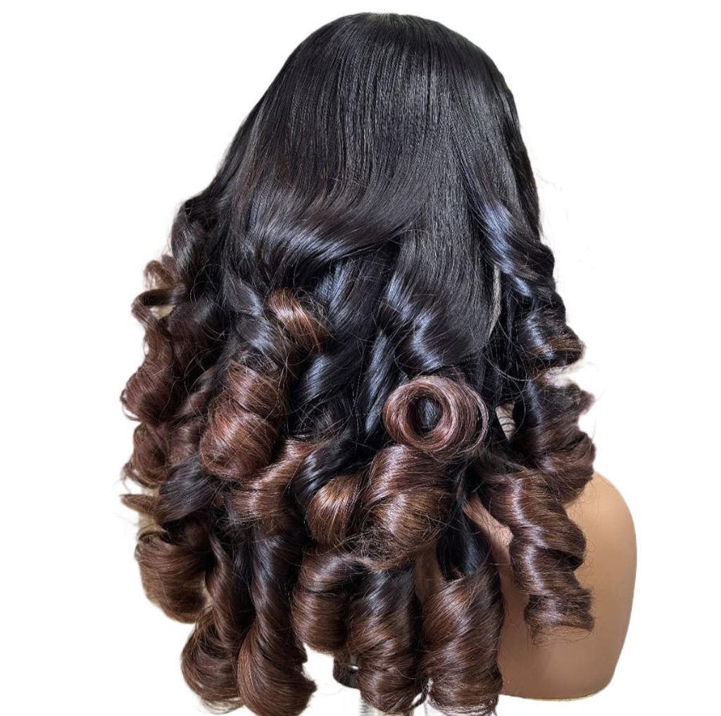 Ombre Brown Super Double Drawn Bouncy Wave Ombre Blonde Colored Bouncy wave Wig Human Hair wig Loose Deep wave 250% High Density 13x4 HD Transparent Lace Frontal Wigs