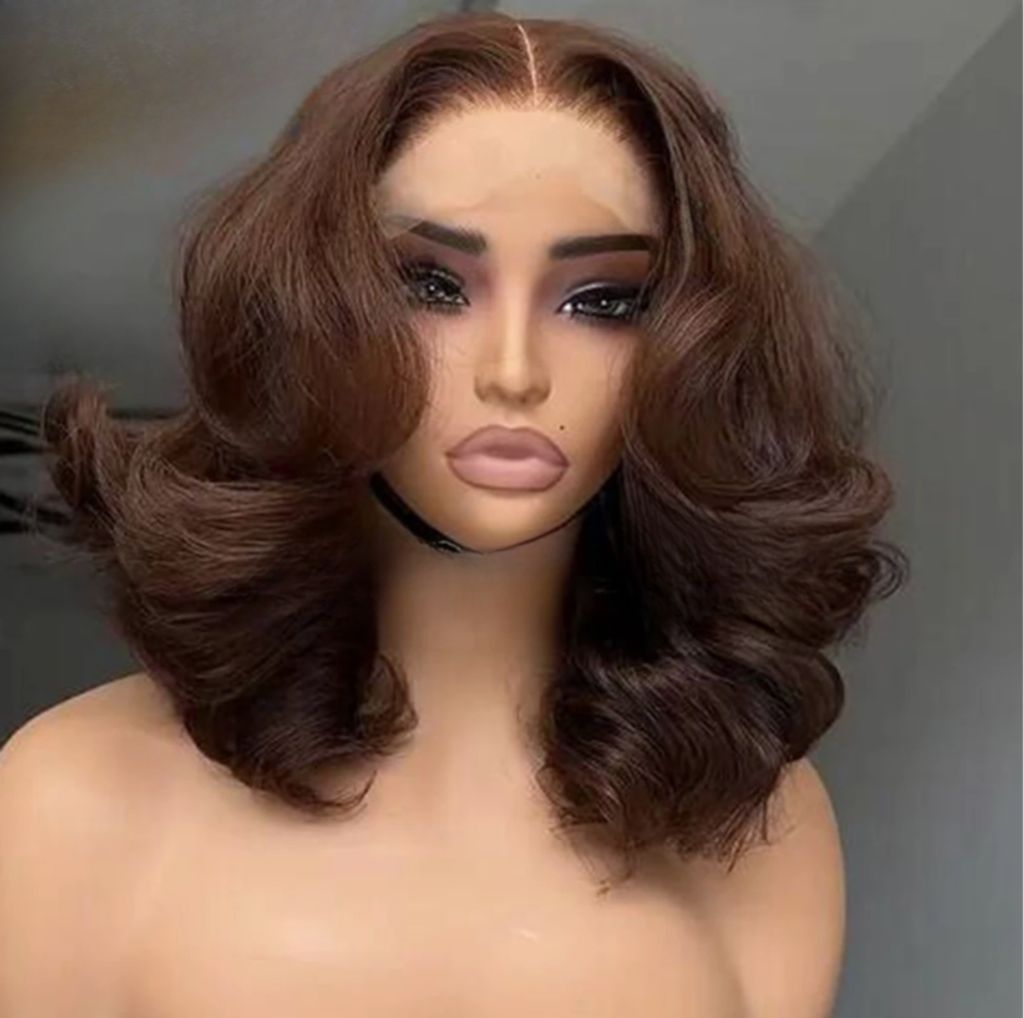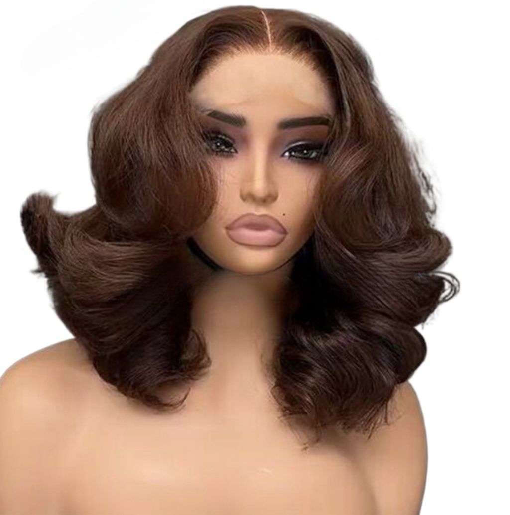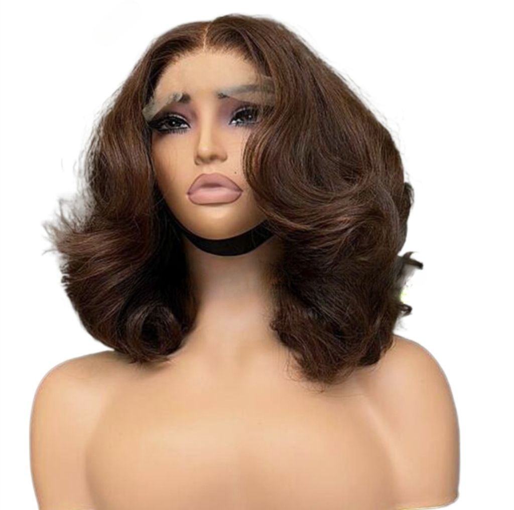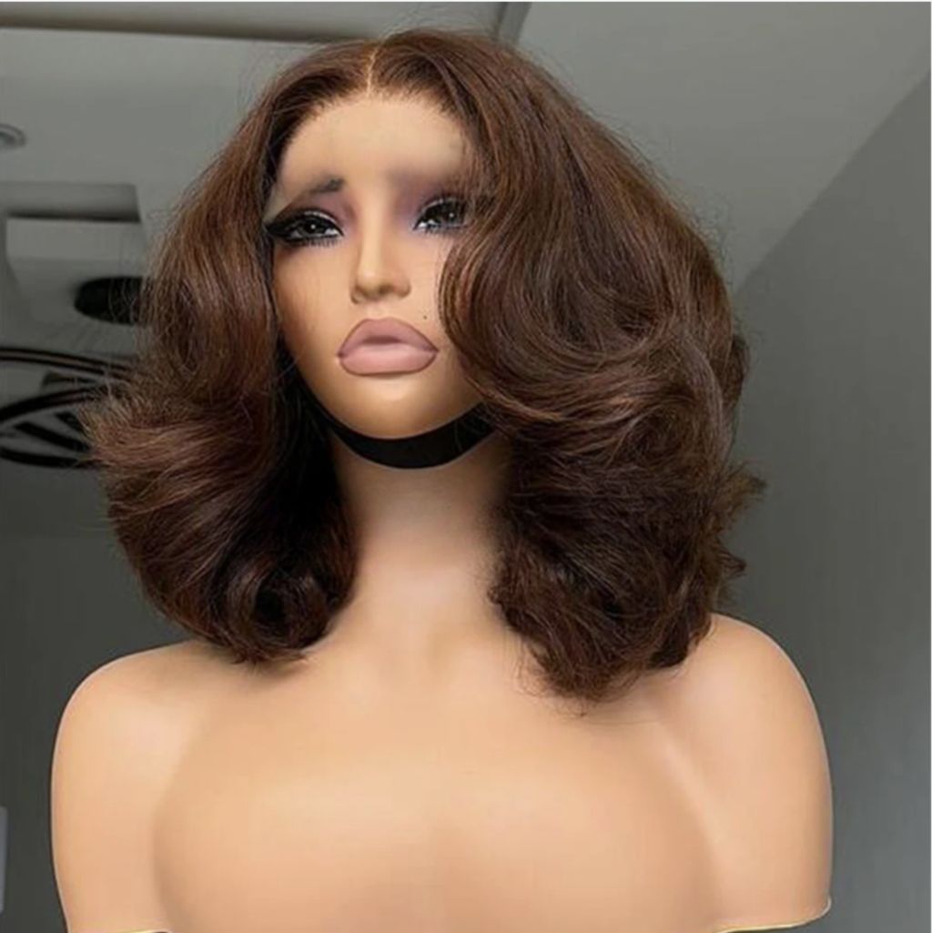 250 Density Double Drawn Vietnamese Raw Human Hair Wigs for Women Full Bouncy Body Wave Brown Color Glueless Lace Frontal Wig